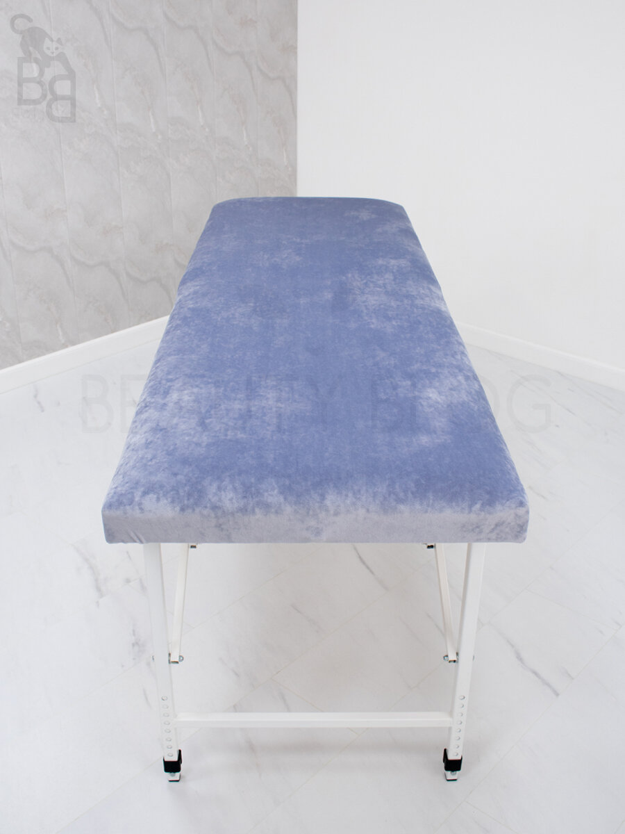 Чехол на кушетку 190 на 70 - 75, чехол на косметологическую кушетку или массажный стол, мягкий велюровый на резинке многоразовый, небесно-голубой