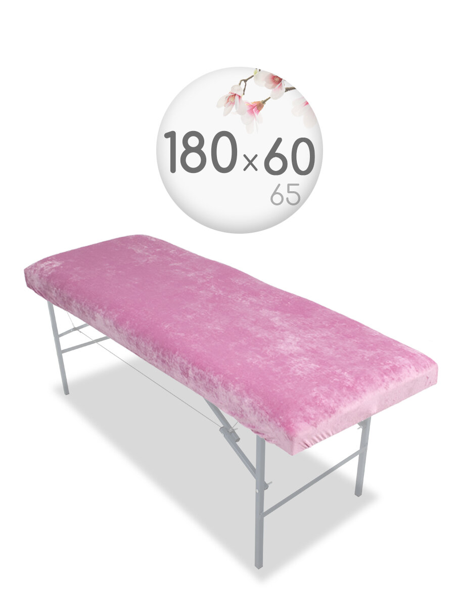 Чехол для кушетки и массажного стола, велюр, 180x60 см, розовый