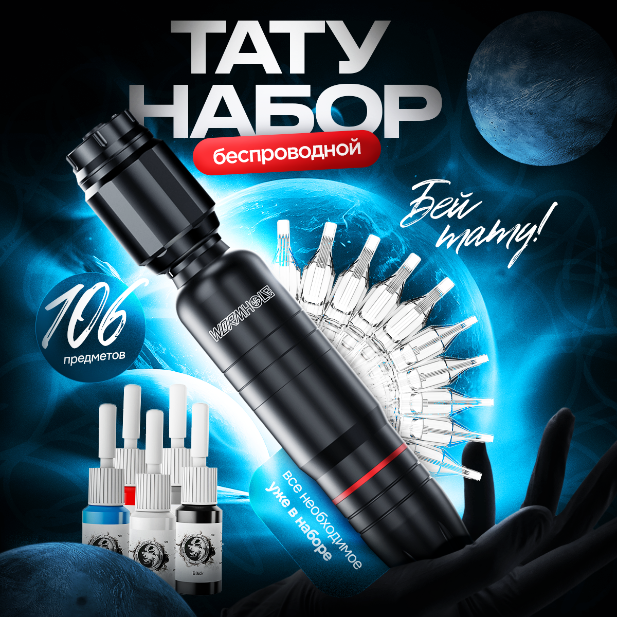 Купить Беспроводная тату-машинка с набором для татуировки