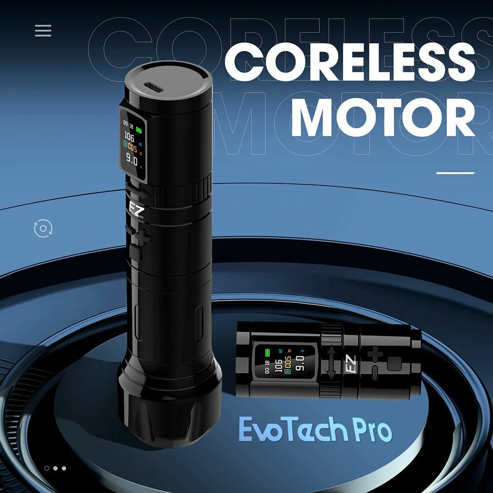 Беспроводная тату машинка c мощным блоком питания EZ EvoTech Pro Wireless Tattoo Pen Black интересное: