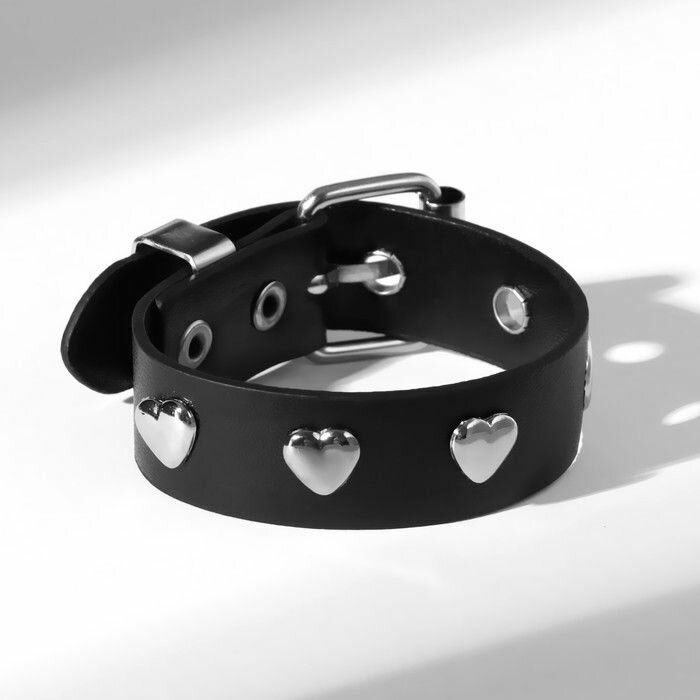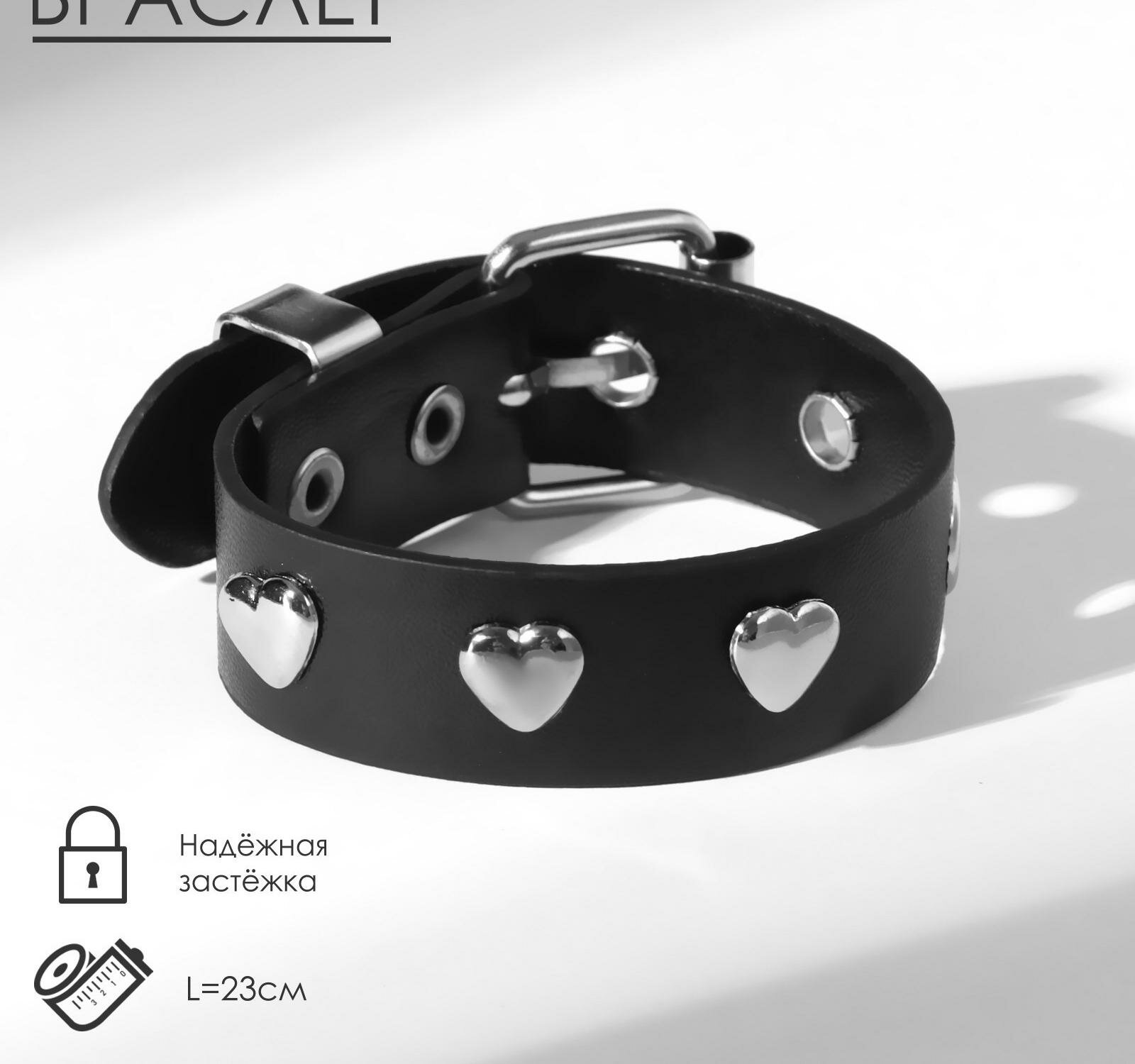 Браслет кожа "Хардкор" сердца, цвет чёрный в серебре интересное: