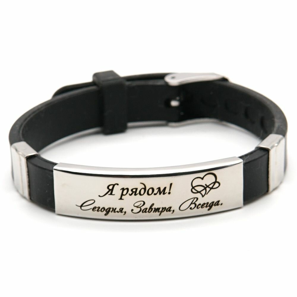 Купить Браслет с гравировкой "Я рядом", стальная вставка, подарочный мешочек (подарок любимому, мужу, парню, мужчине на день рождения, день свадьбы, юбилей, годовщину свадьбы, 23 Февраля)