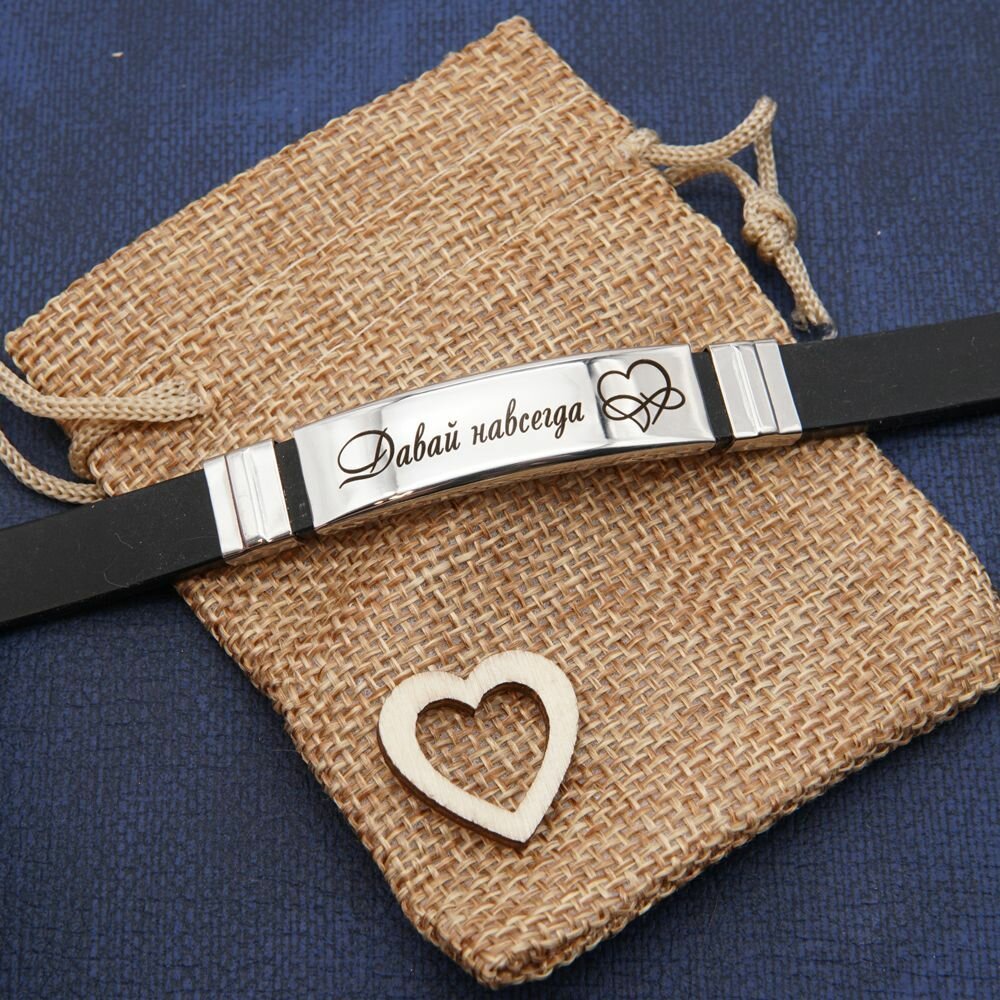 Купить Браслет с гравировкой "Давай навсегда", стальная вставка, подарочный мешочек (подарок любимому, мужу, парню, мужчине на день рождения, день свадьбы, юбилей, годовщину свадьбы, 23 Февраля)