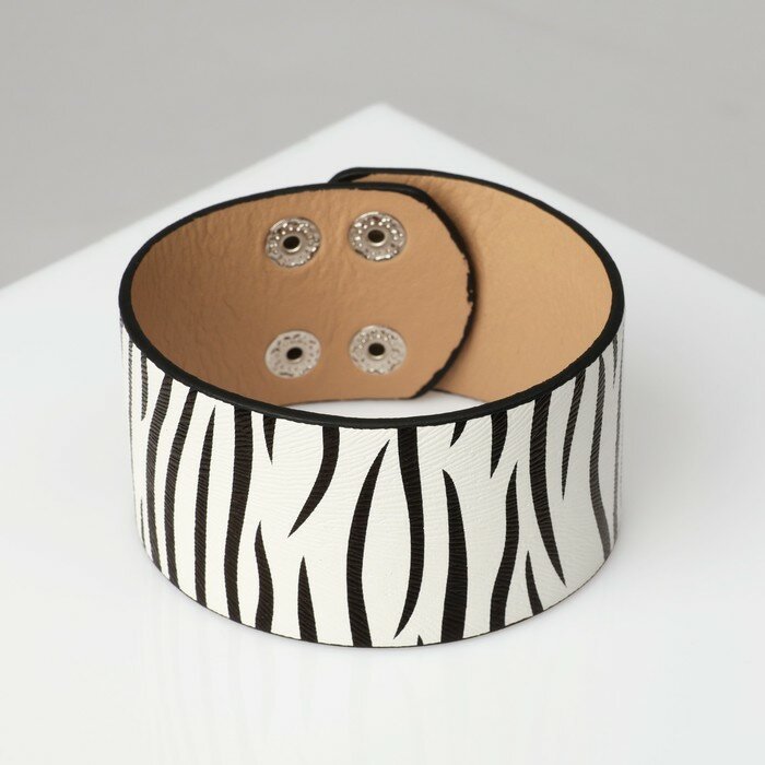 Купить Браслет кожа «Сафари» зебра, широкий, цвет чёрно-белый, 23,5 см