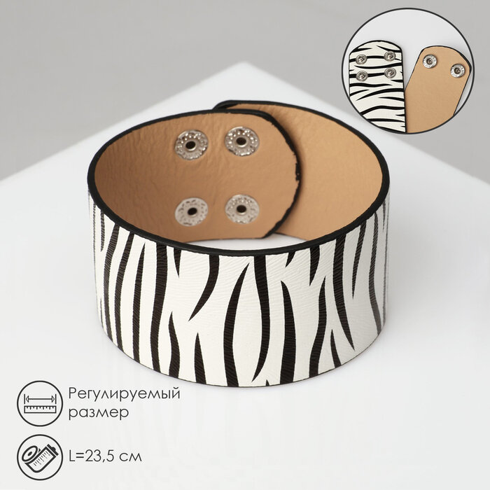 Браслет кожа «Сафари» зебра, широкий, цвет чёрно-белый, 23,5 см интересное: