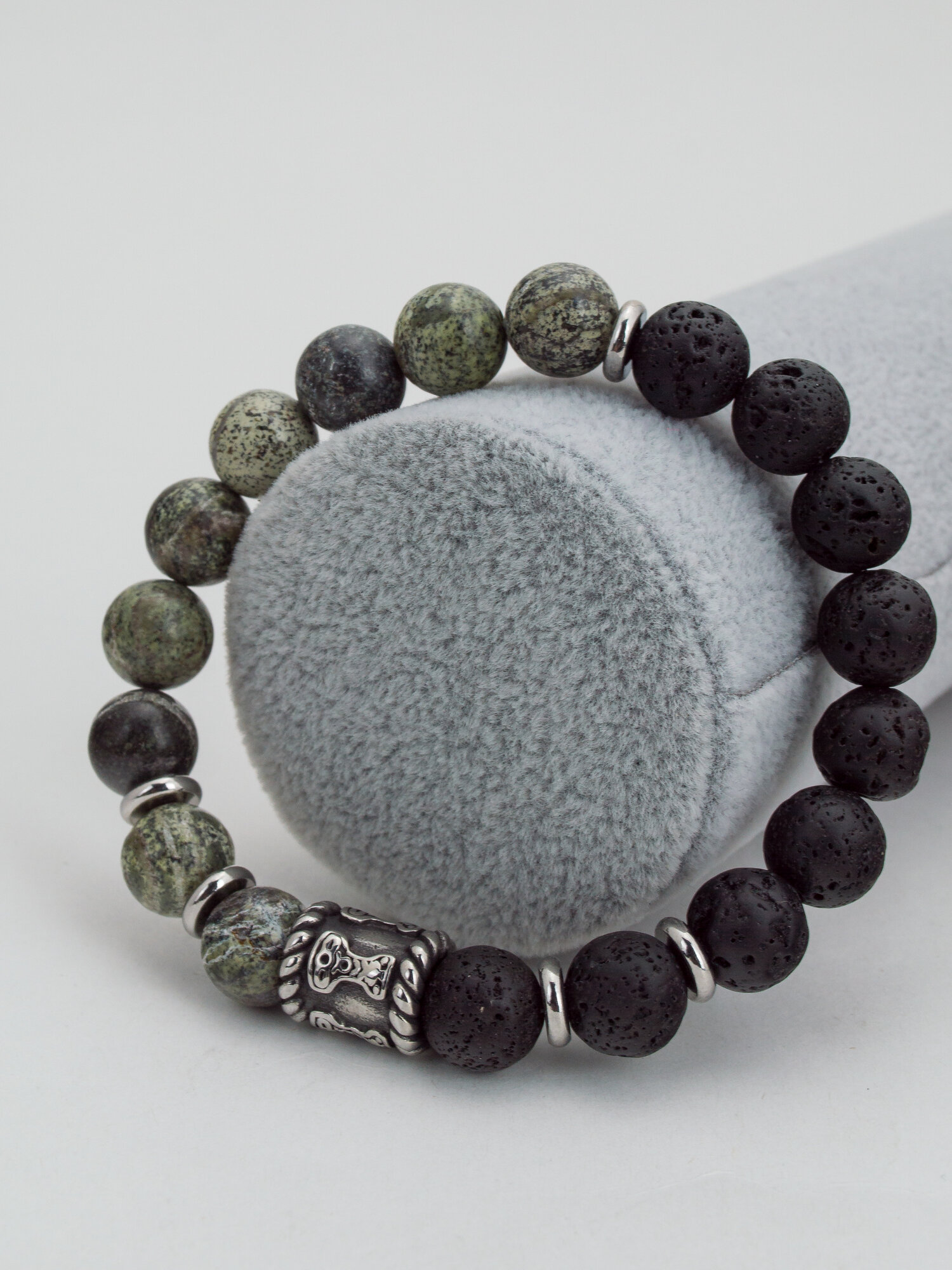 Браслет из натуральных камней змеевика и лавы 10 мм