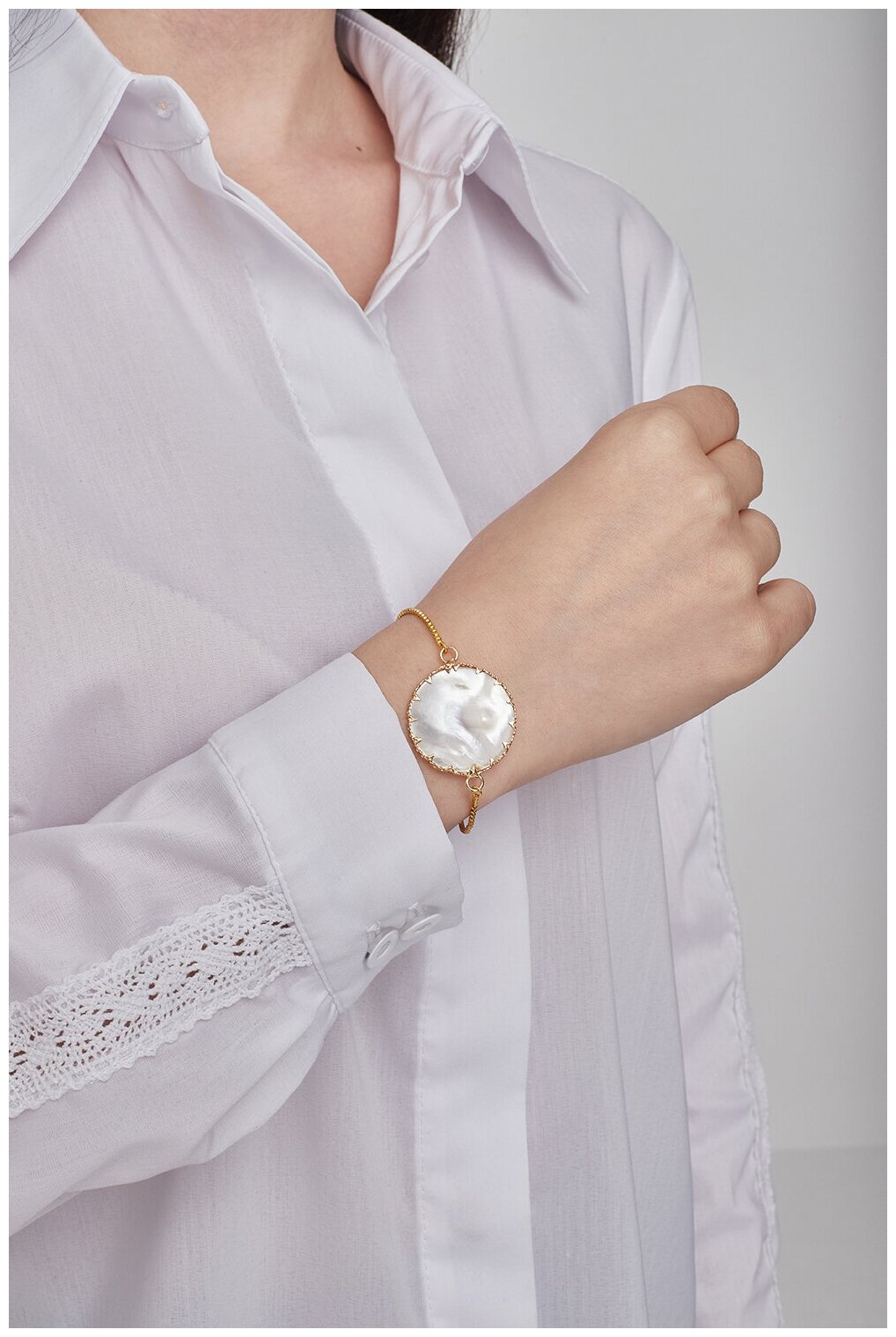 Купить Браслет со вставкой Перламутровый диск на руку женский безразмерный бижутерия в подарок женщине