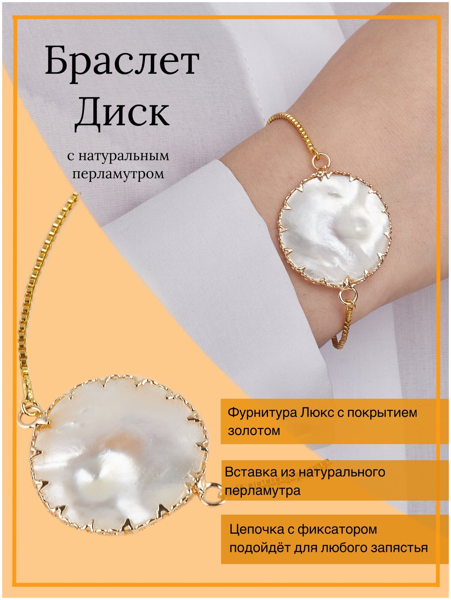 Ниже Вы можете прочитать отзывы на Браслет со вставкой Перламутровый диск на руку женский безразмерный бижутерия в подарок женщине, ознакомится с подробными характеристиками, посмотреть интересные обзоры и фотографии на Браслет со вставкой Перламутровый диск на руку женский безразмерный бижутерия в подарок женщине.