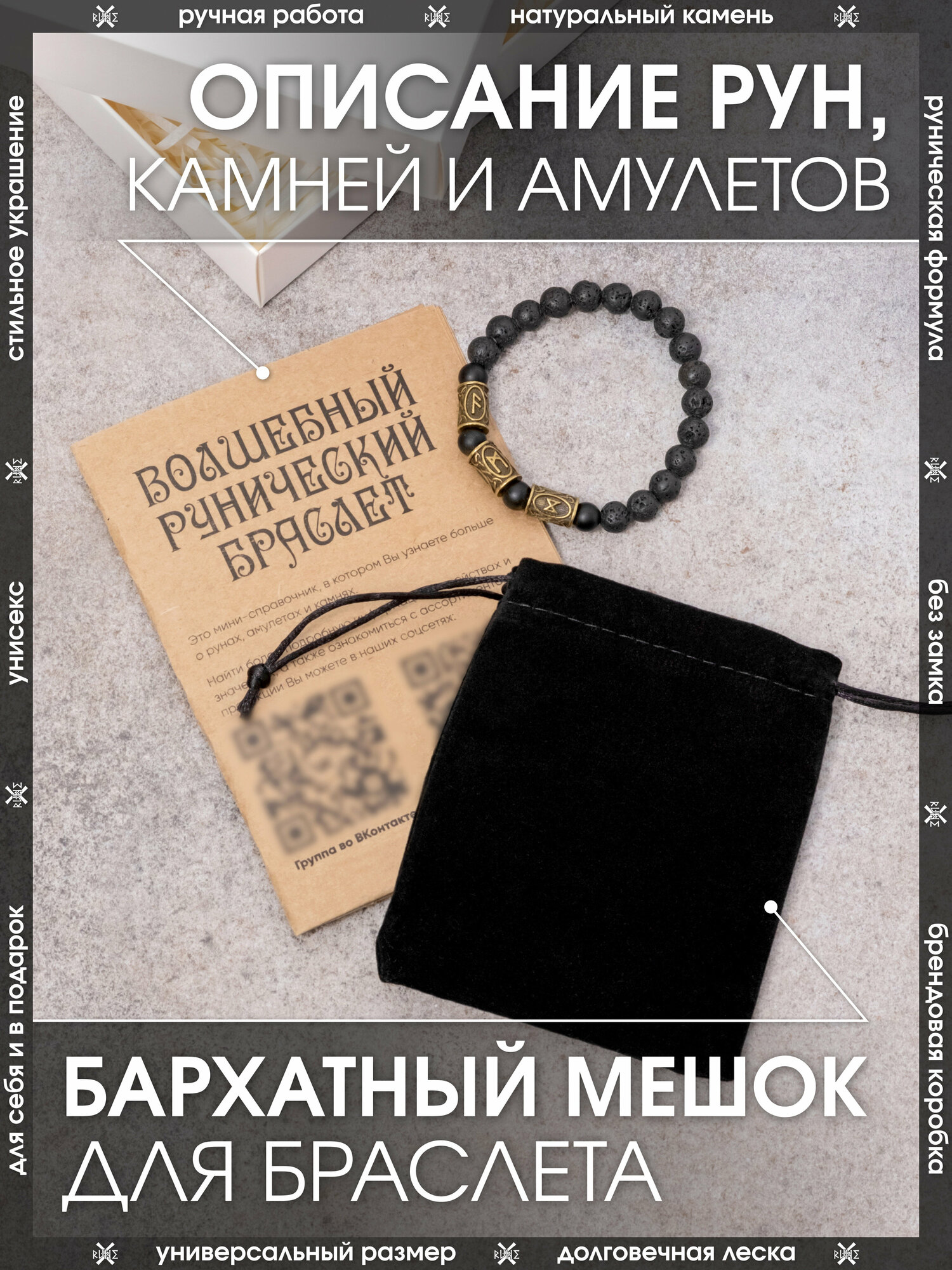 | Комплектация | Брендовая коробка X-Rune - 1 шт., брошюра с расшифровкой значения рунных формул - 1 шт., мешочек для хранения - 1 шт., браслет - 1 шт. |