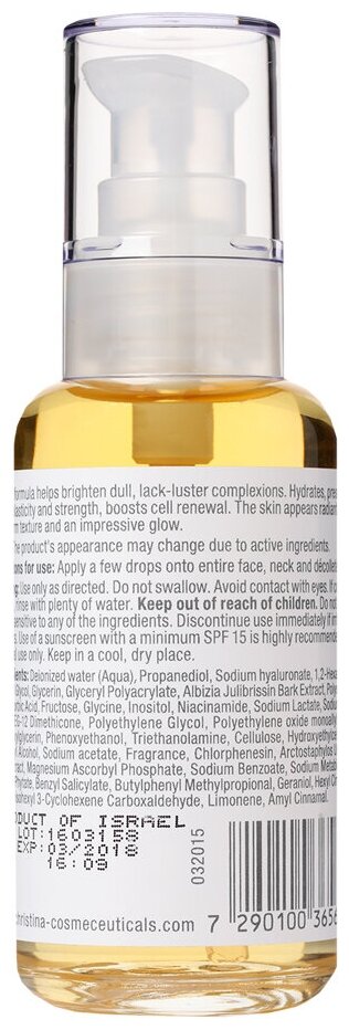 Ниже Вы можете прочитать отзывы на Christina Bio Phyto Alluring Serum Сыворотка Очарование (шаг 7) для лица, шеи и декольте, 100 мл, ознакомится с подробными характеристиками, посмотреть интересные обзоры и фотографии на Christina Bio Phyto Alluring Serum Сыворотка Очарование (шаг 7) для лица, шеи и декольте, 100 мл.