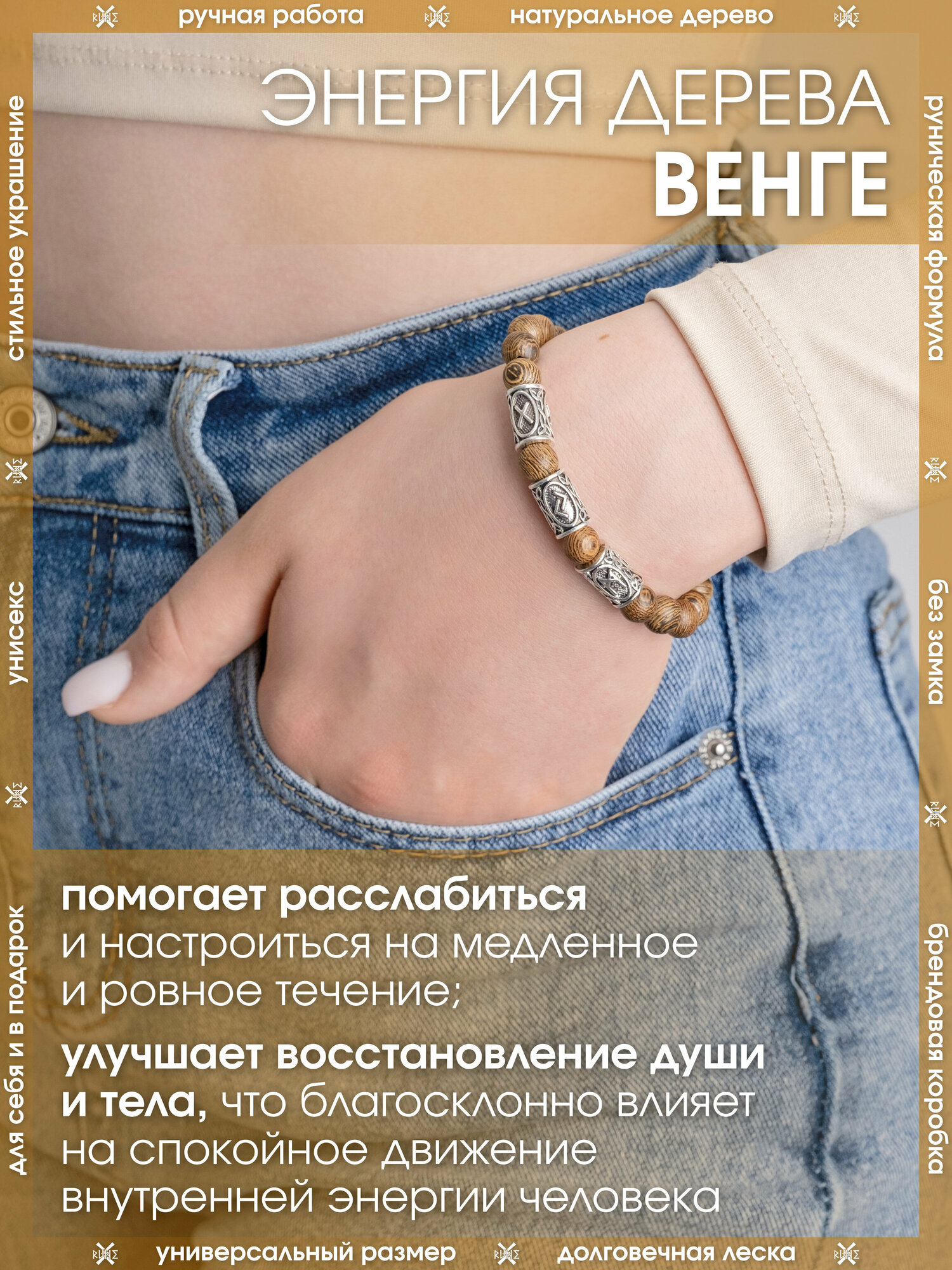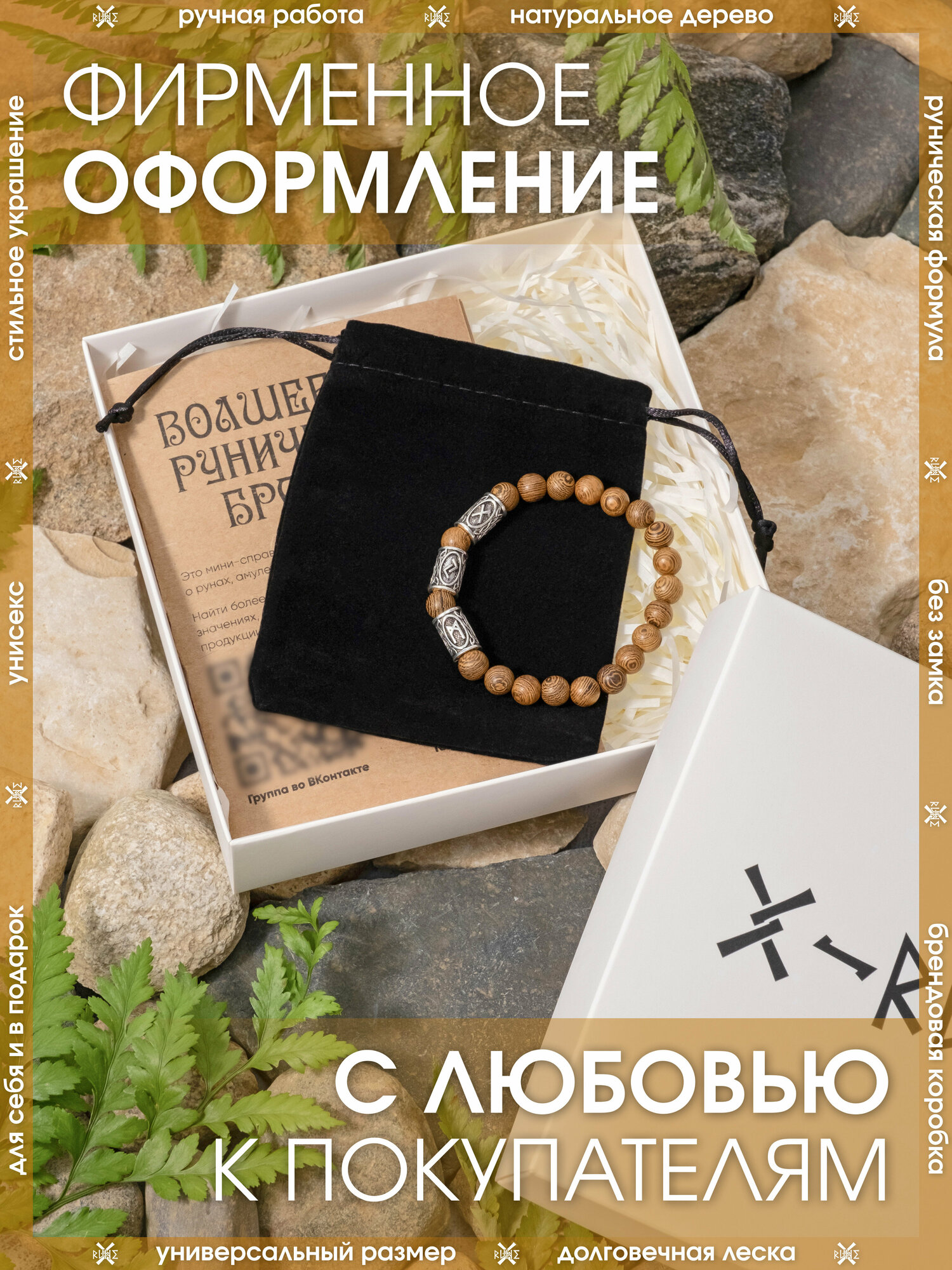 Купить Браслет из дерева Венге/Руническая формула баланса, спокойствия и гармонии/Древесный браслет-оберег, бижутерия