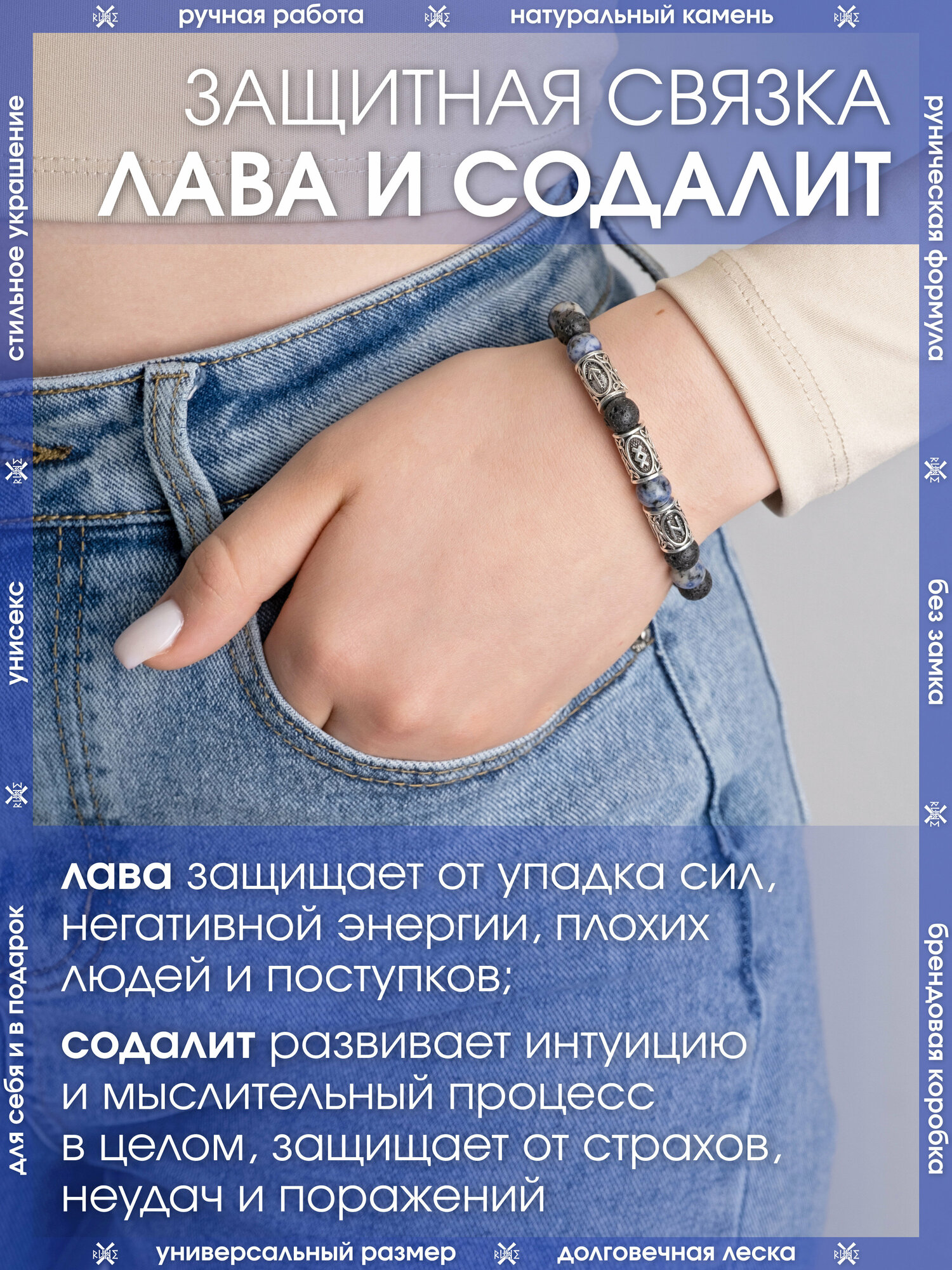 Купить Браслет из натуральных камней Лава и Содалит/Руническая формула карьерного роста/Чёрный браслет-оберег, бижутерия