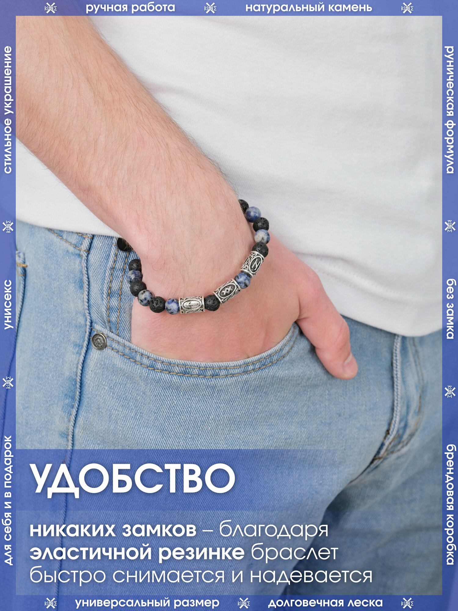 СохранитьБраслет из натуральных камней Лава и Содалит/Руническая формула карьерного роста/Чёрный браслет-оберег, бижутерия интересное: