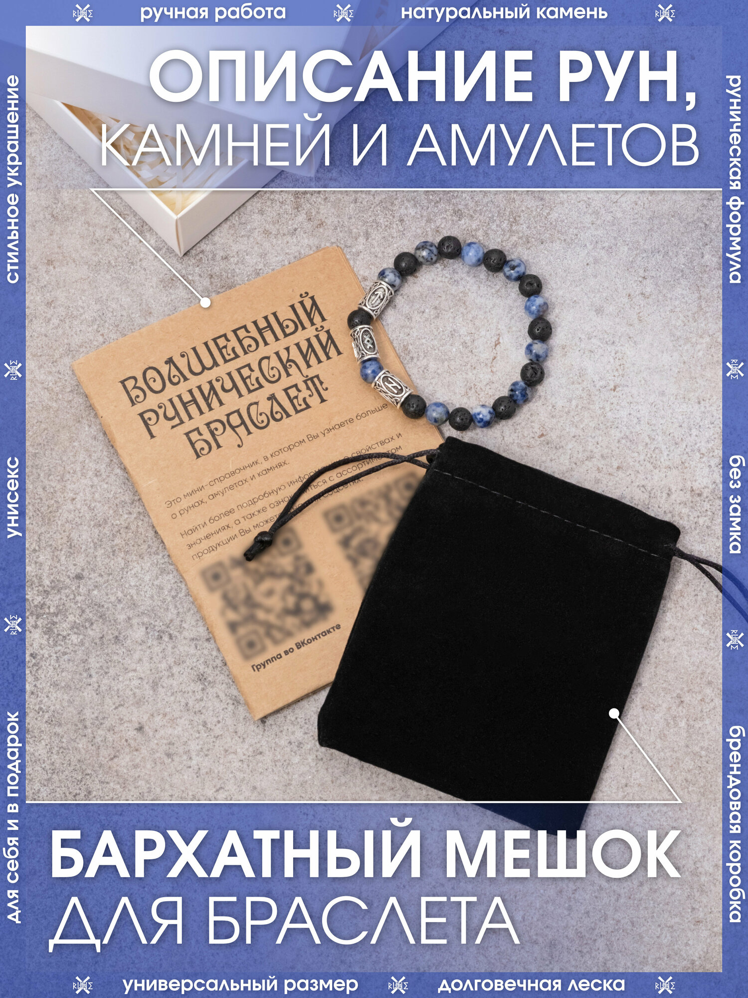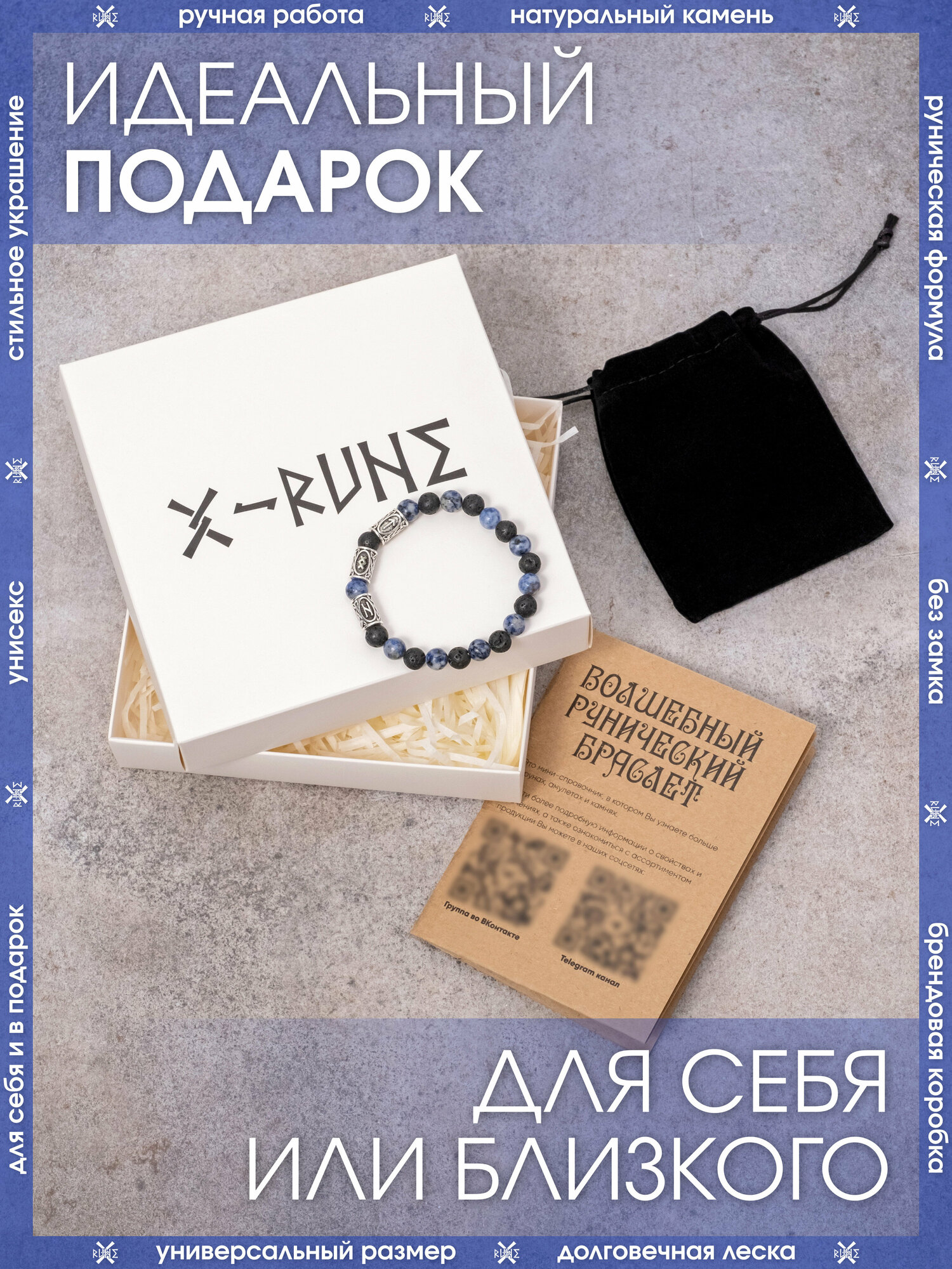 Браслет из натуральный камней/Оберег на руку из содалита/Талисман-амулет с рунами женский, мужской/Украшение из бусин