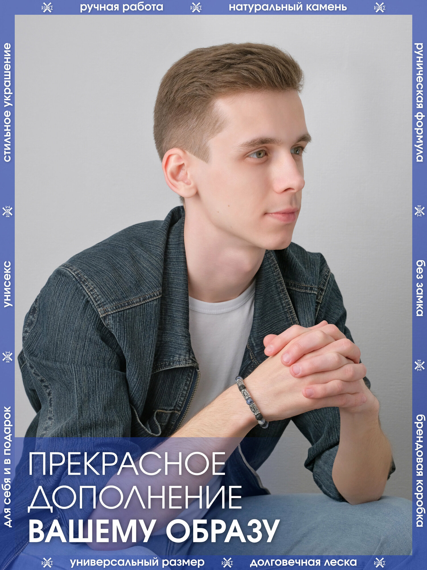 Браслет из натуральный камней/Оберег на руку из яшмы/Талисман-амулет с рунами женский, мужской/Украшение из бусин