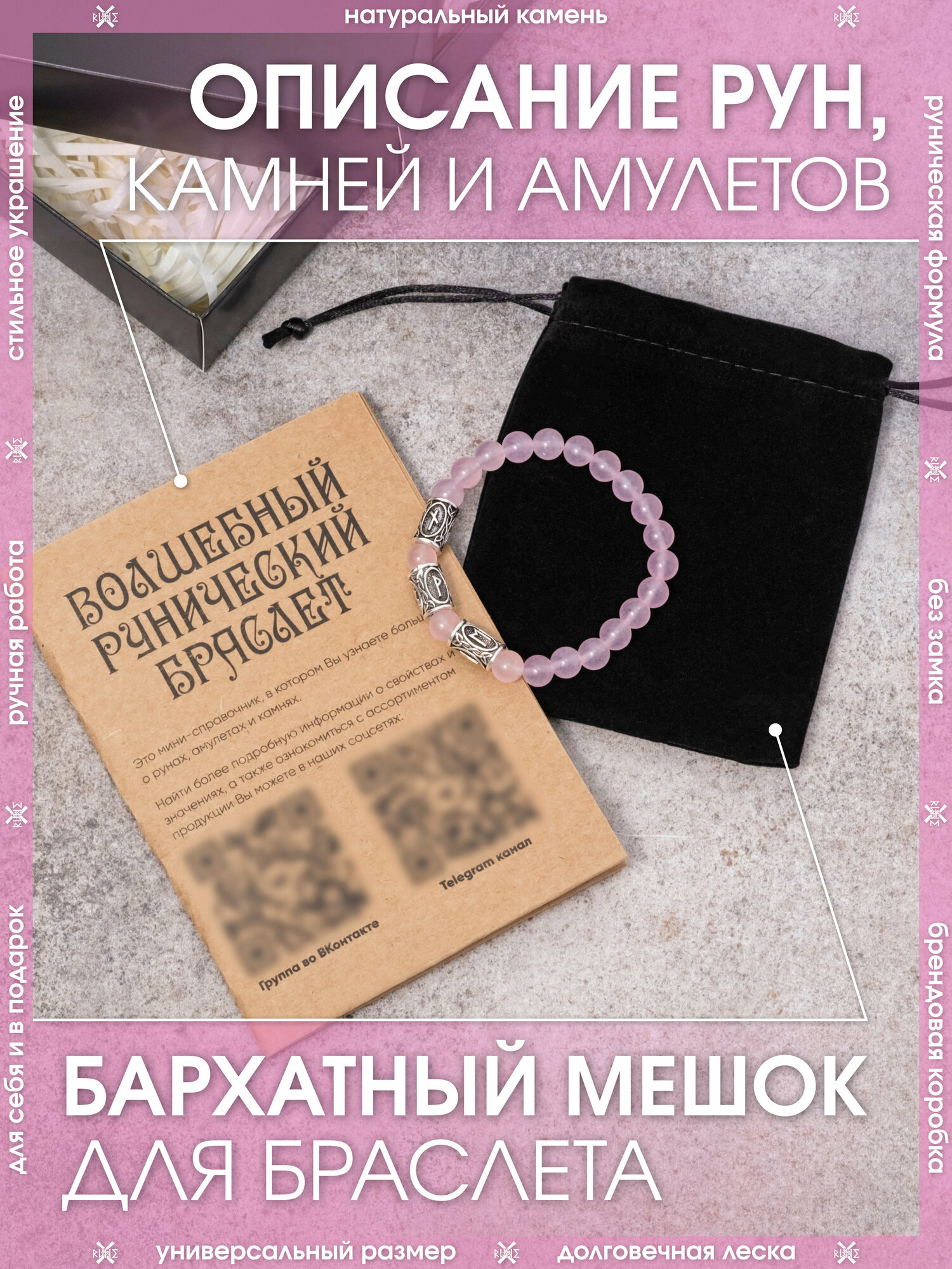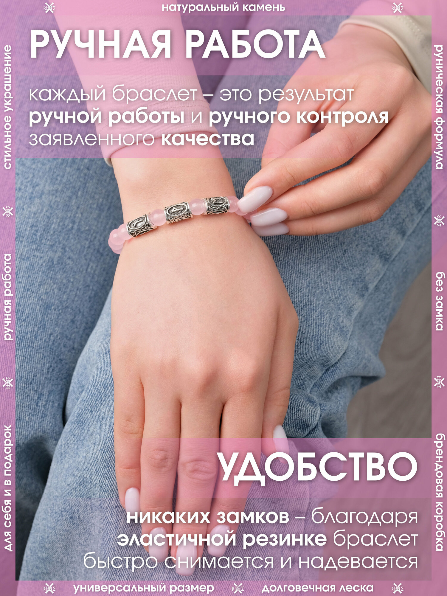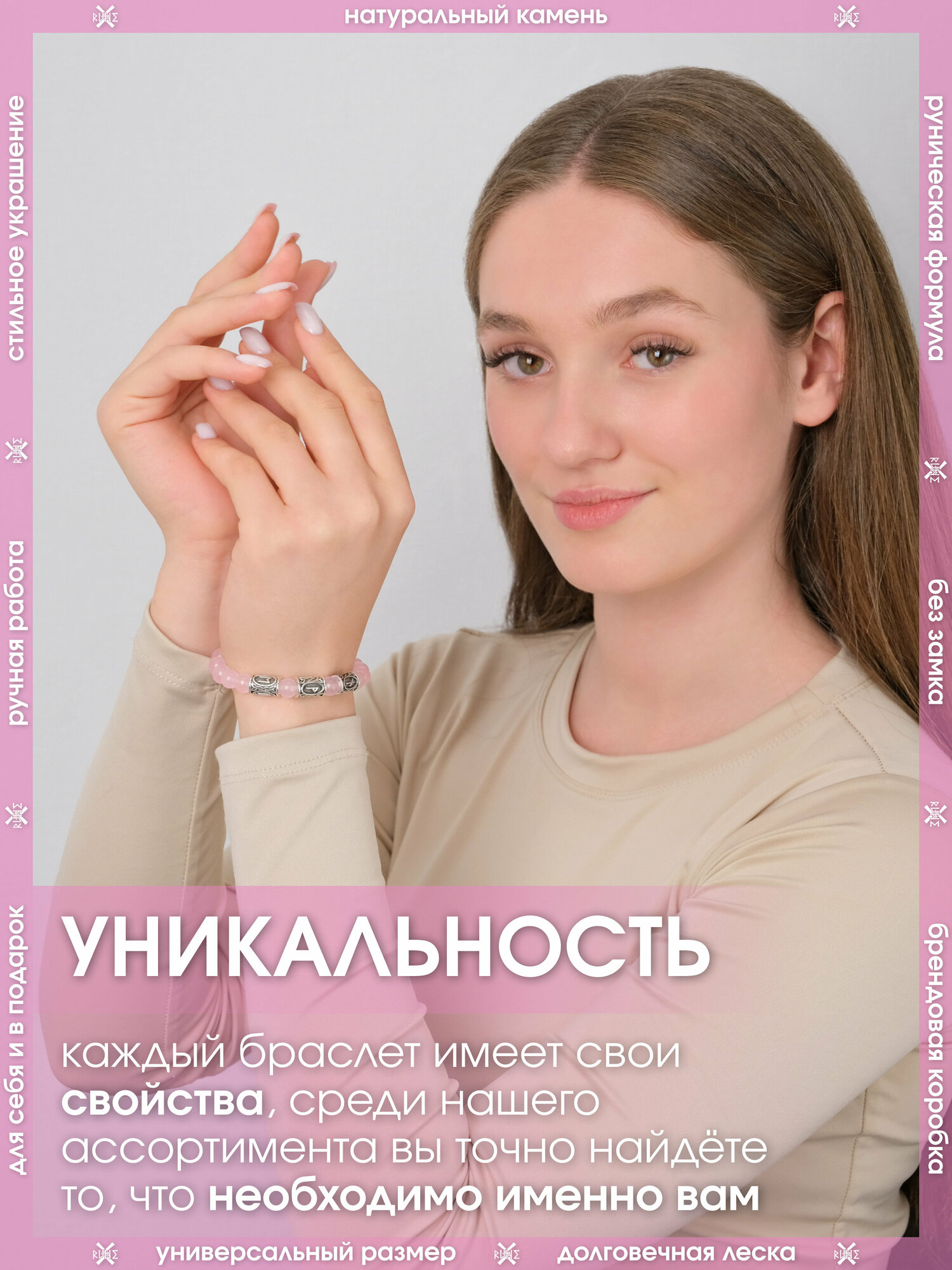 СохранитьБраслет из натуральный камней/Оберег на руку из розового кварца/Талисман-амулет с рунами женский/Украшение из бусин интересное: