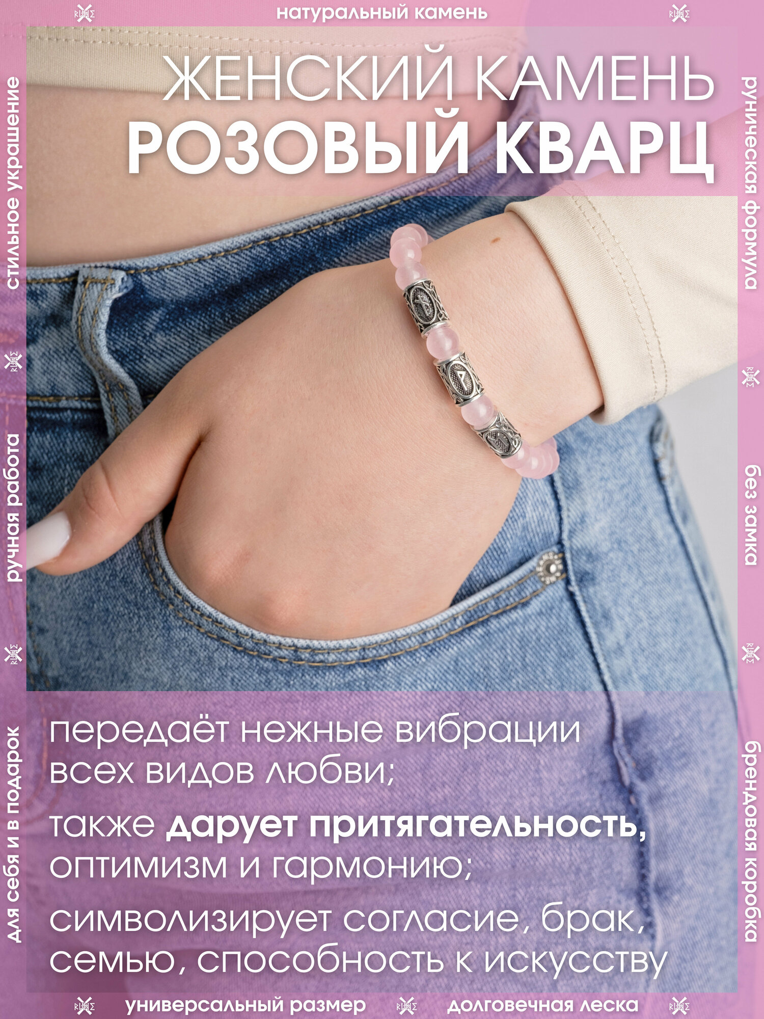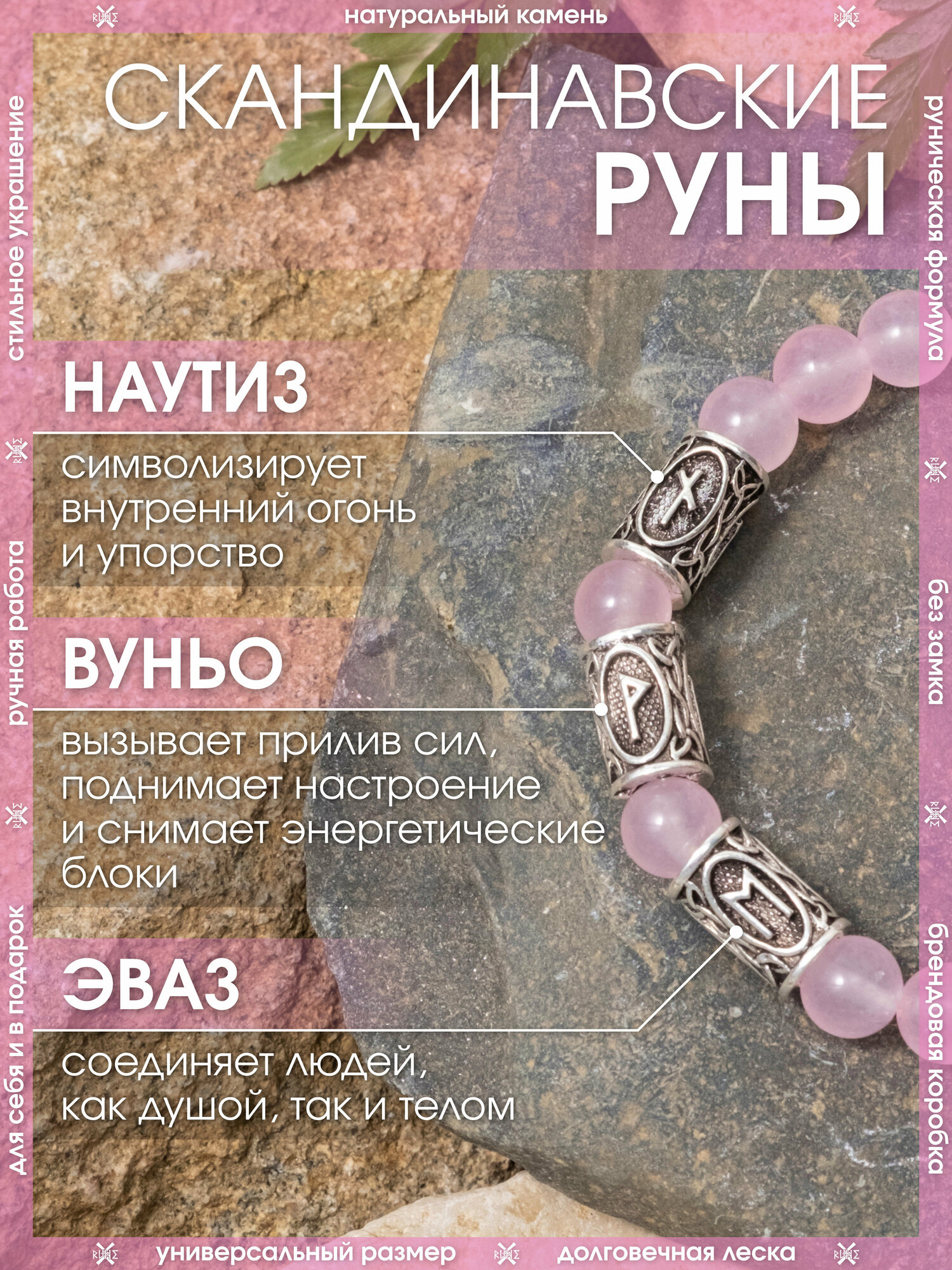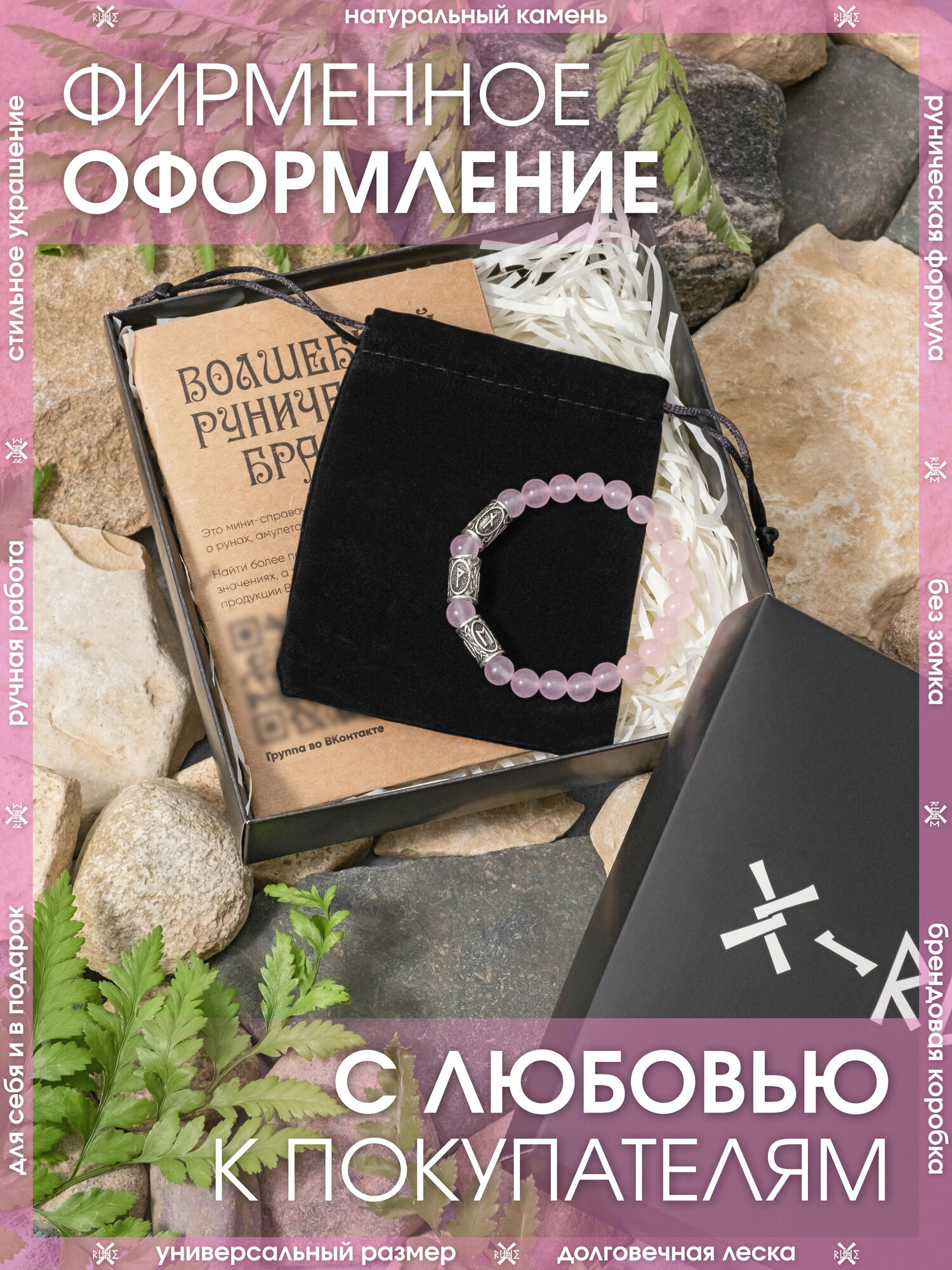 СохранитьБраслет из натуральный камней/Оберег на руку из розового кварца/Талисман-амулет с рунами женский/Украшение из бусин интересное: