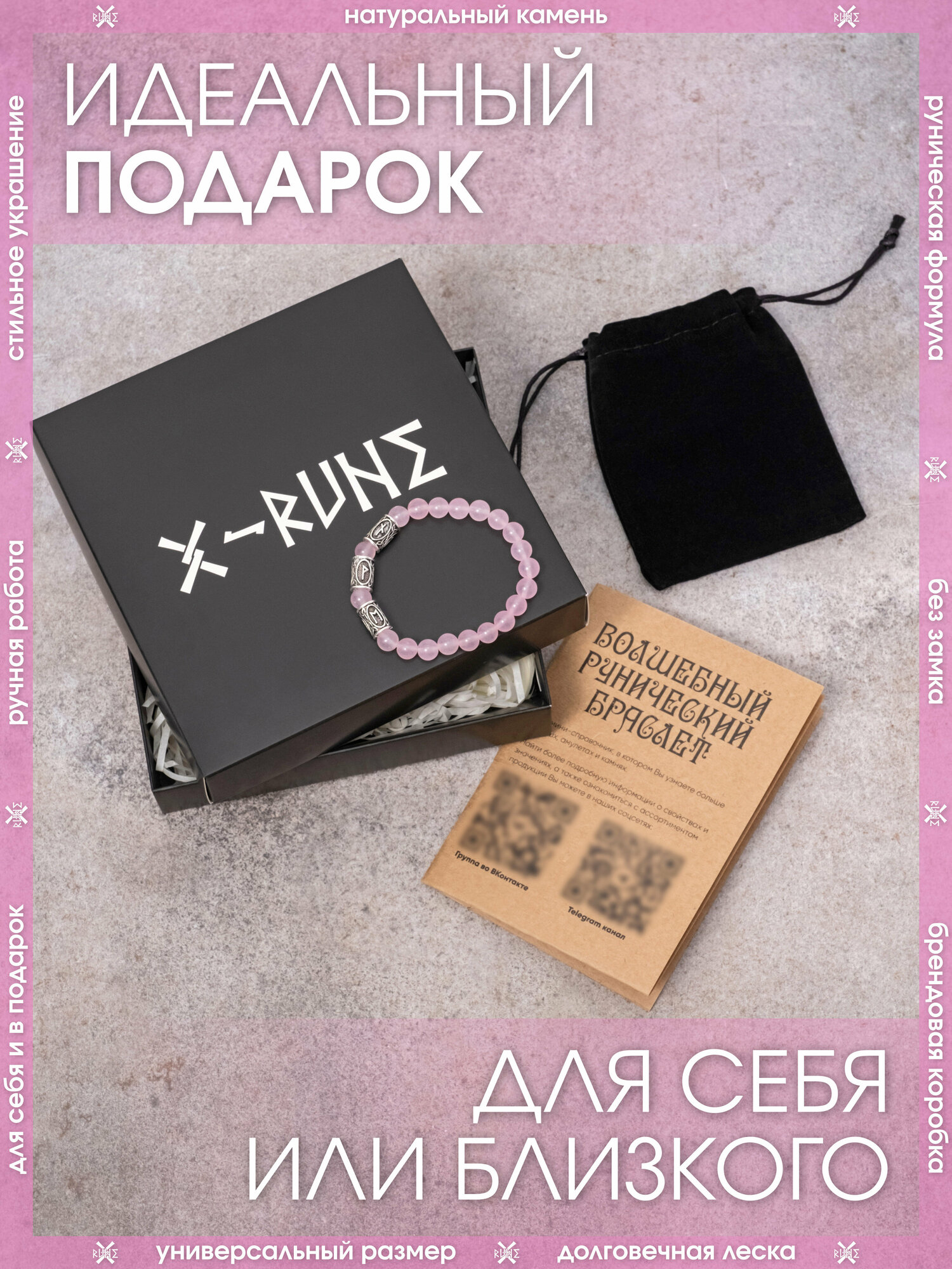 Купить Браслет из натуральный камней/Оберег на руку из розового кварца/Талисман-амулет с рунами женский/Украшение из бусин