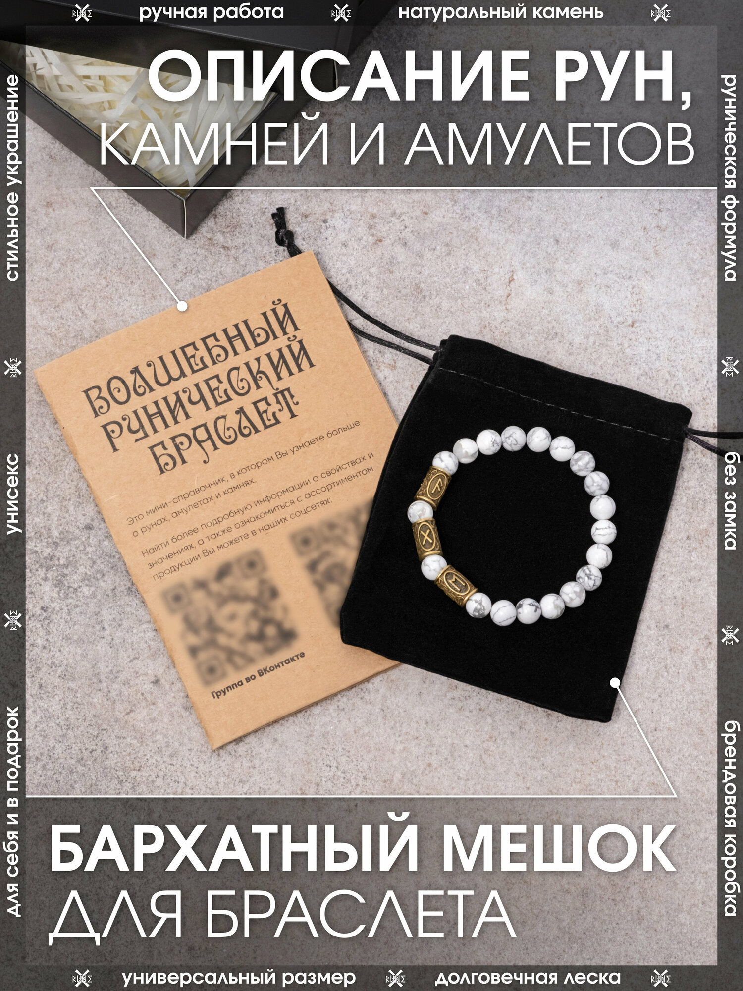 | Комплектация | Брендовая коробка X-Rune - 1 шт., брошюра с расшифровкой значения рунных формул - 1 шт., мешочек для хранения - 1 шт., браслет - 1 шт. |