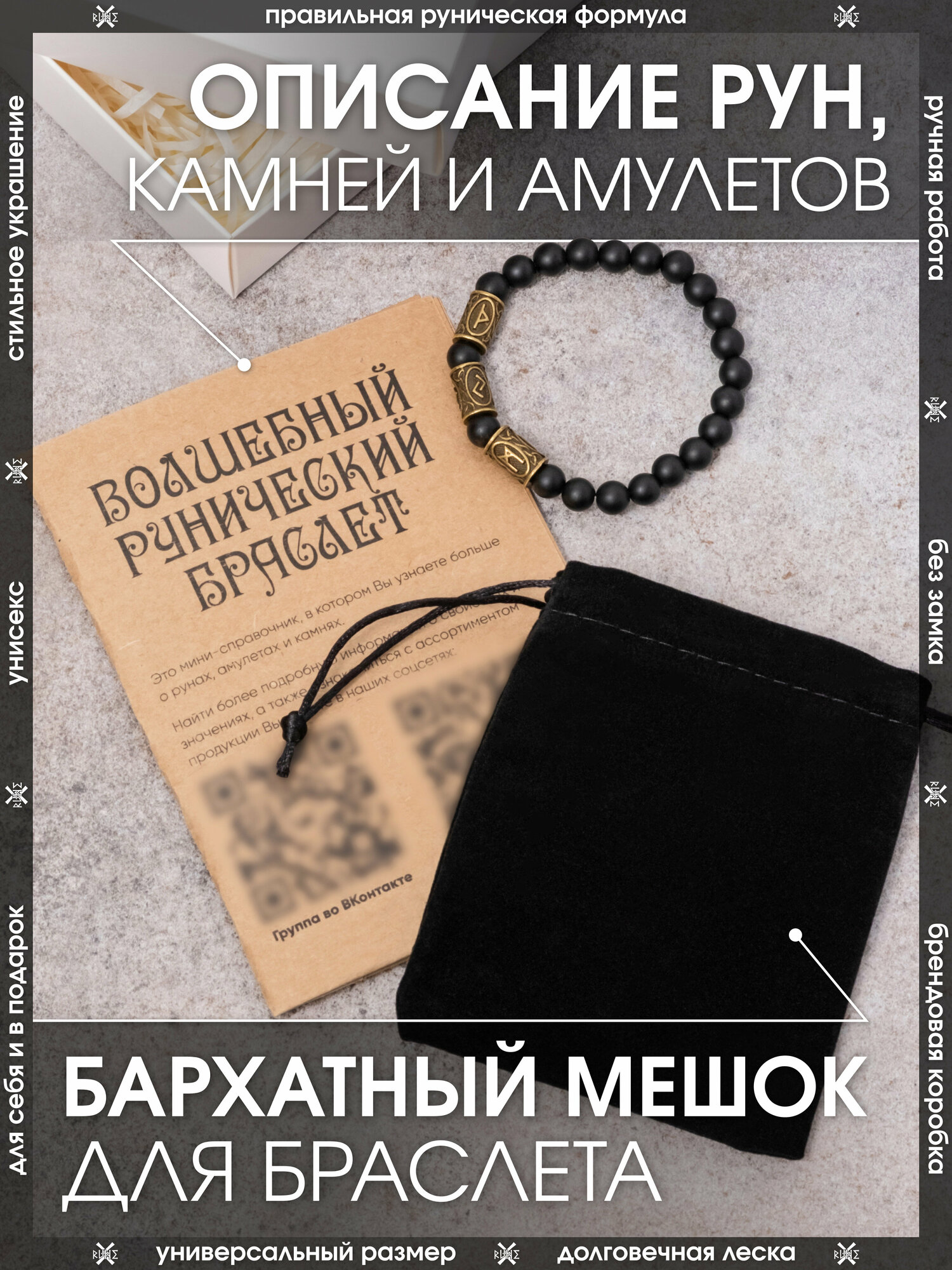 | Комплектация | Брендовая коробка X-Rune - 1 шт., брошюра с расшифровкой значения рунных формул - 1 шт., мешочек для хранения - 1 шт., браслет - 1 шт. |