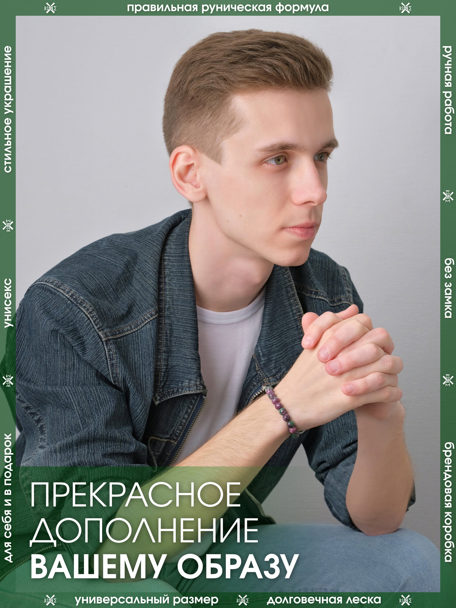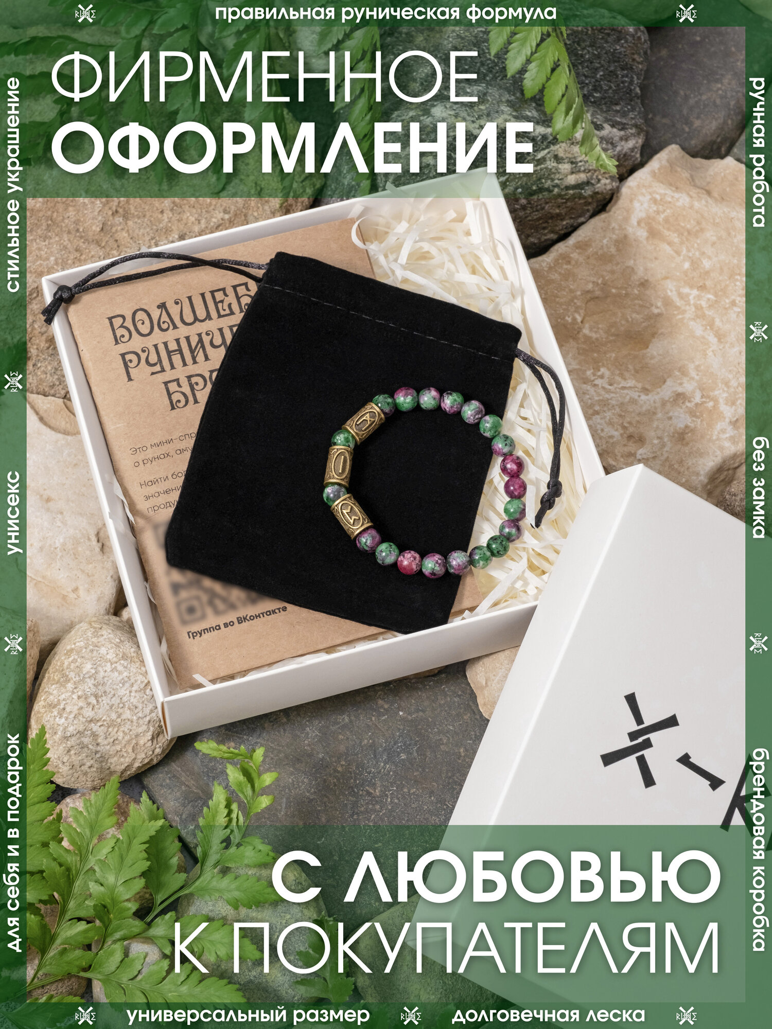 СохранитьБраслет-оберег из камня Цоизит/Руническая формула гармонии/Браслет-талисман из бусин с рунами, бижутерия, украшение интересное: