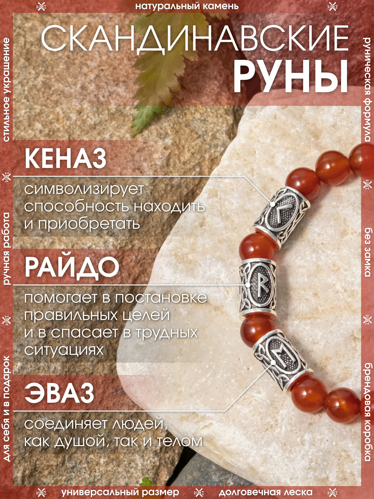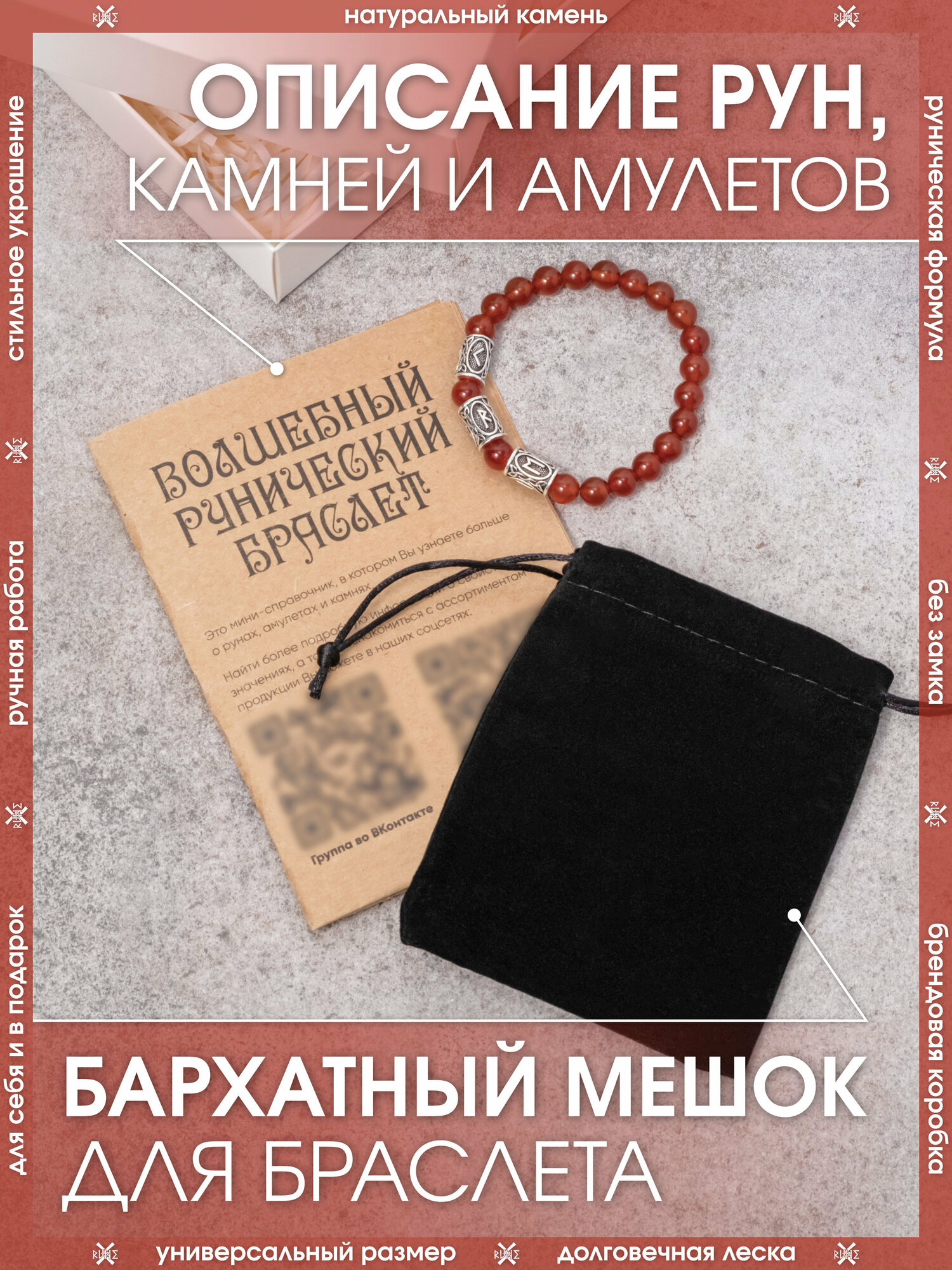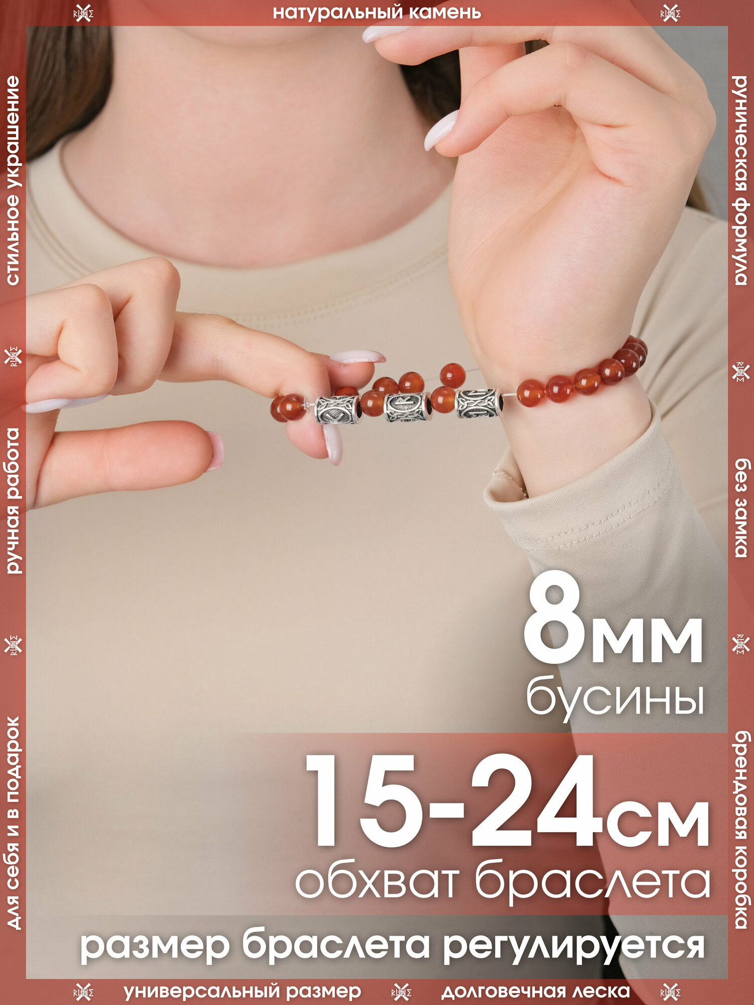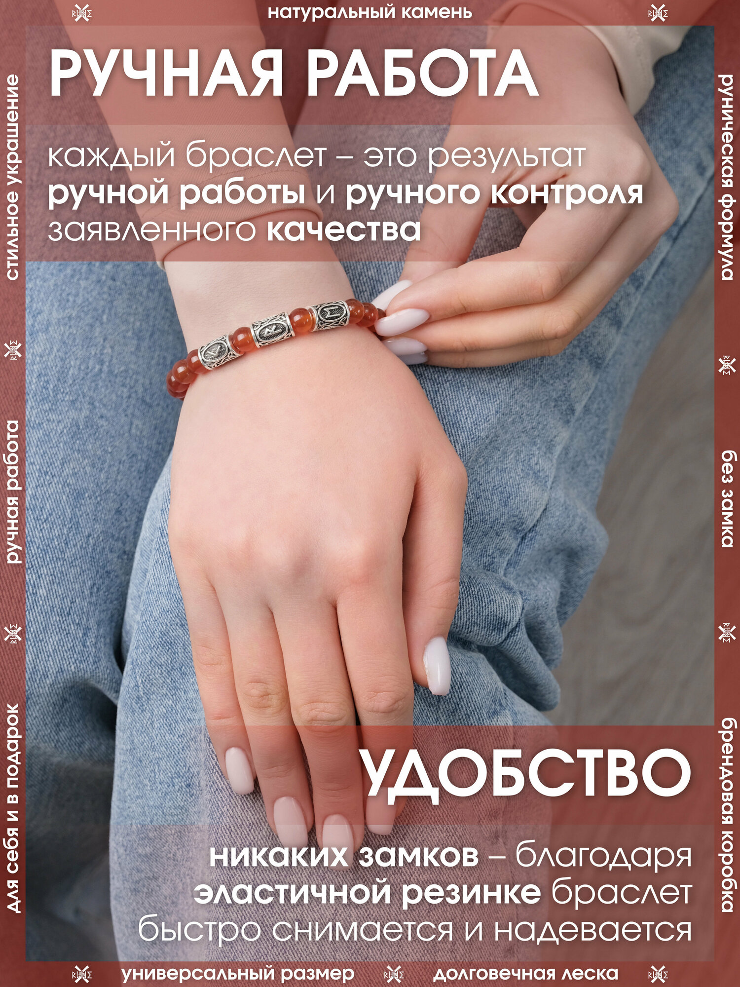 СохранитьБраслет из натуральный камней/Оберег на руку из сердолика/Талисман-амулет с рунами женский/Украшение из бусин интересное: