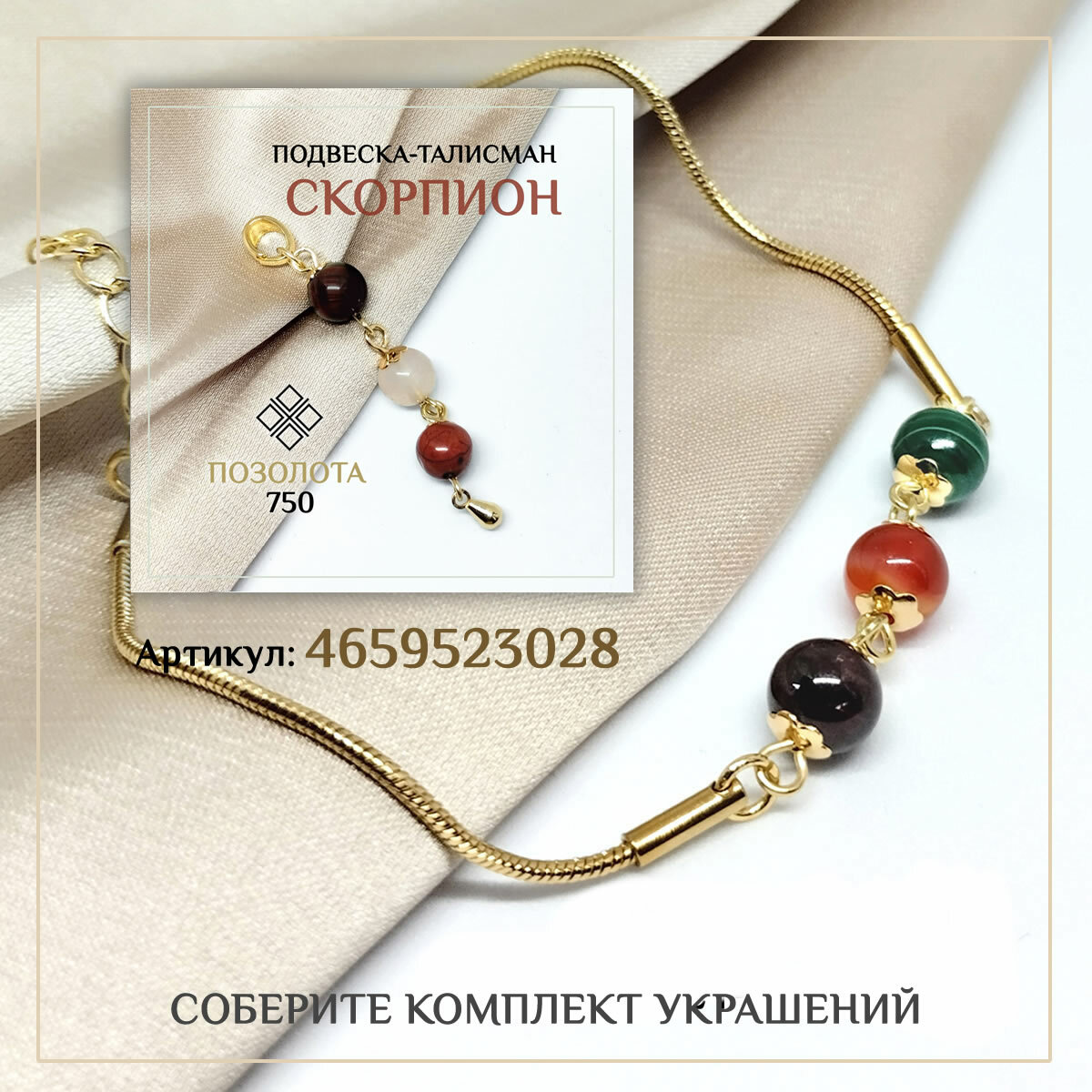 СохранитьБраслет талисман по зодиаку Скорпион. Позолота, натуральные камни: Гранат, Малахит, Сердолик интересное: