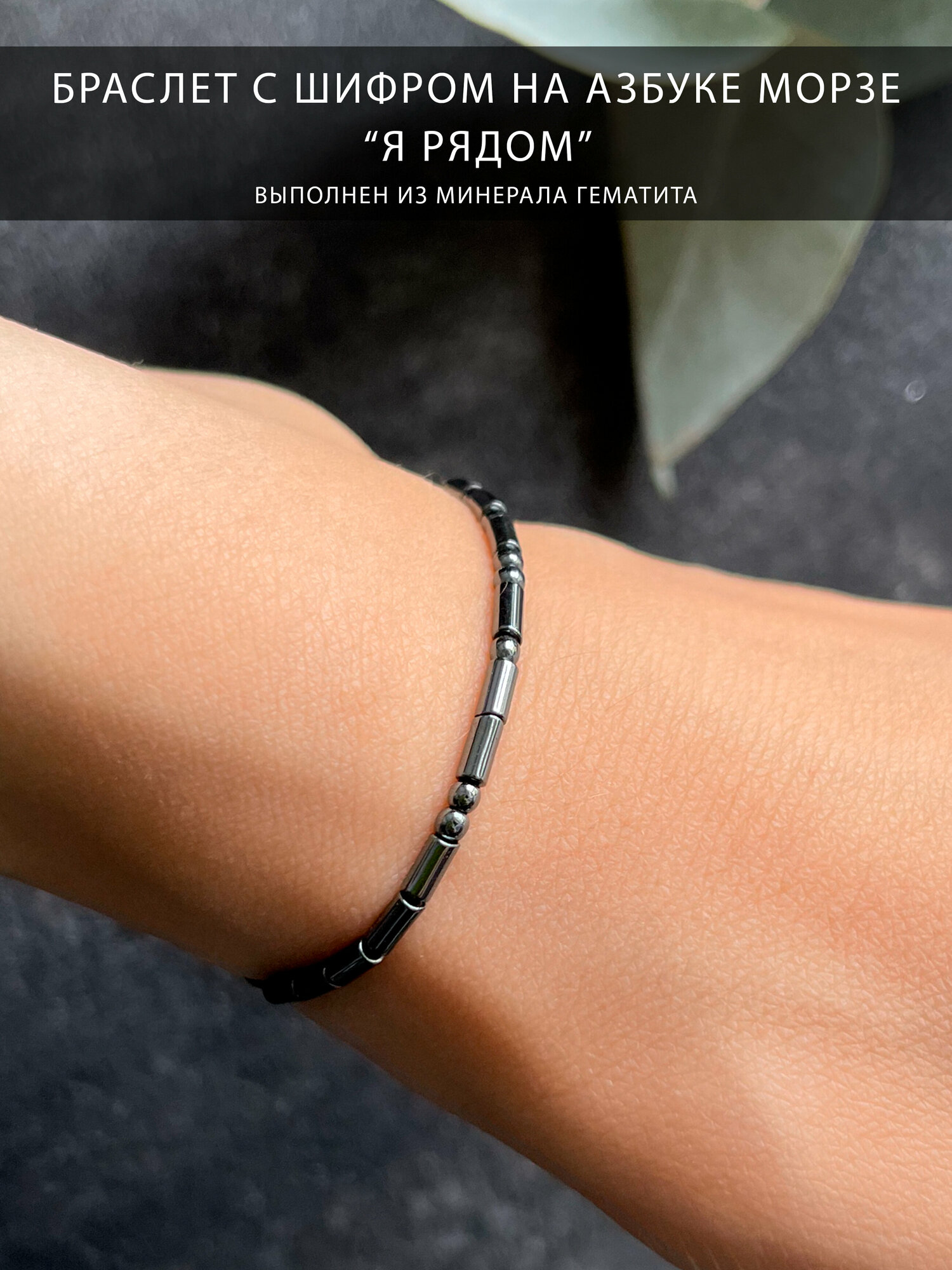 Ниже Вы можете прочитать отзывы на Браслет Морзе с шифром "Я рядом" из гематита MY CODE MORSE, ознакомится с подробными характеристиками, посмотреть интересные обзоры и фотографии на Браслет Морзе с шифром "Я рядом" из гематита MY CODE MORSE.