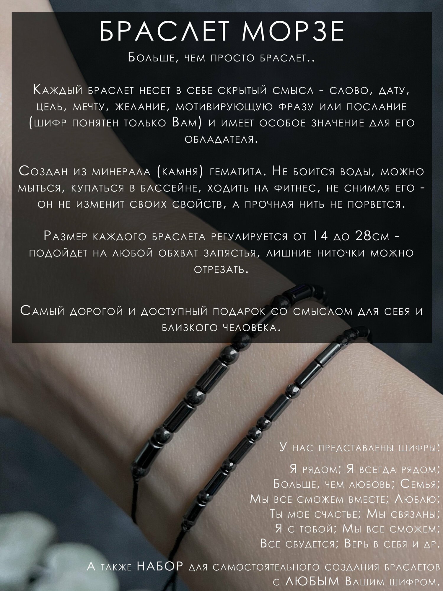 Браслет Морзе верь В себя из гематита на нити MY CODE MORSE мотивирующий браслет