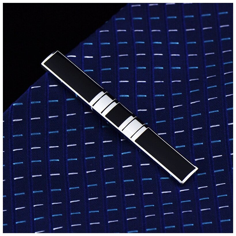 Зажим для галстука черный с серебристыми прямоугольниками интересное: