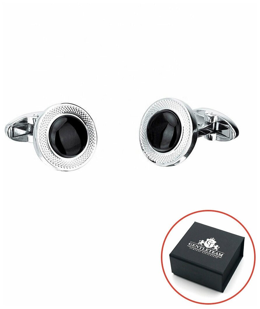 Купить Запонки GENTLETEAM круглые с черным стеклом