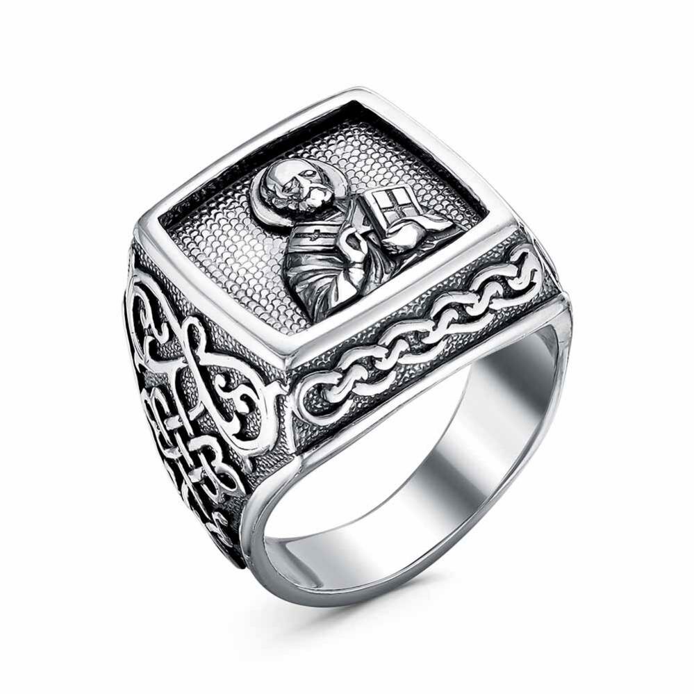 Кольцо "николай чудотворец" Красная Пресня бижутерия, покрытие - серебрение с оксидированием, без вставок (20.5)