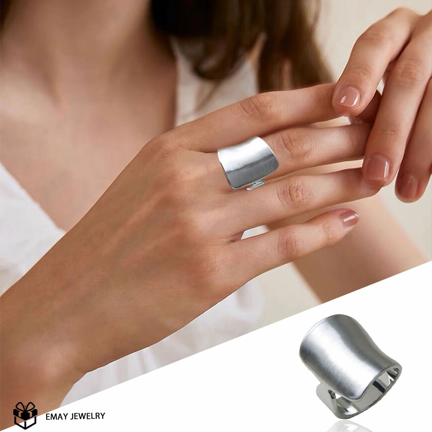 широкое кольцо серебристый матовый размер18 интересное: