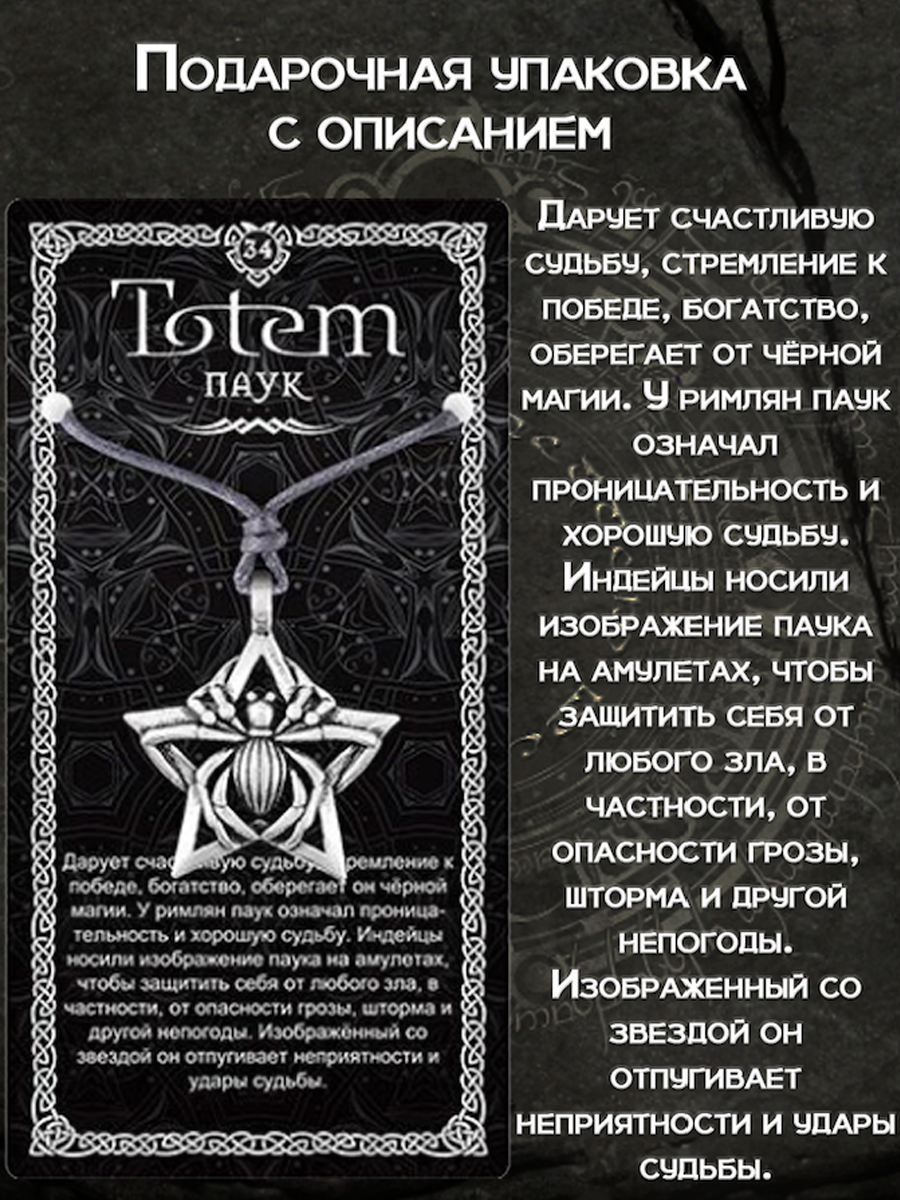 Ниже Вы можете прочитать отзывы на Амулет подвеска на шею Паук, ознакомится с подробными характеристиками, посмотреть интересные обзоры и фотографии на Амулет подвеска на шею Паук.