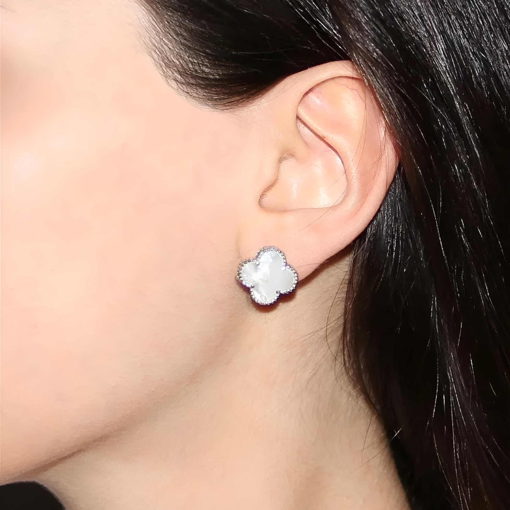 Серьги женские - бижутерия, сережки с перламутром, серьги винтики, пусеты, гвоздики, серьги с ониксом, цвет золотистый и серебристый, подарок девушке на день рождения
