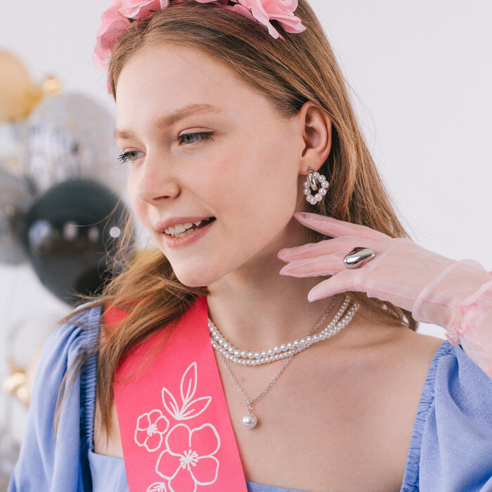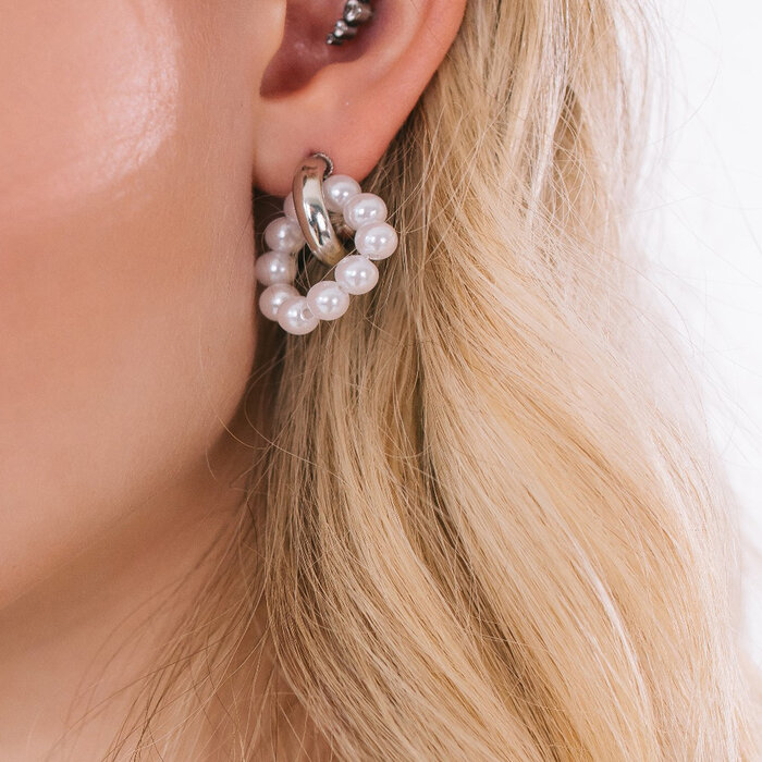 Бижу комплект серьги женские со съёмным элементом, 2 жемчужных кольца, цвет белый в серебре, 1 пара