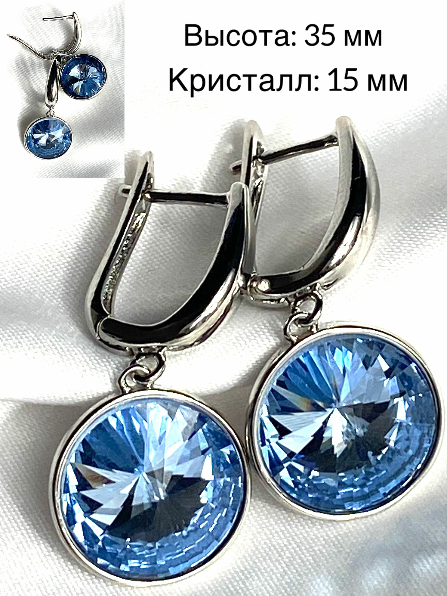 серьги с круглым камнем "голубой топаз" интересное: