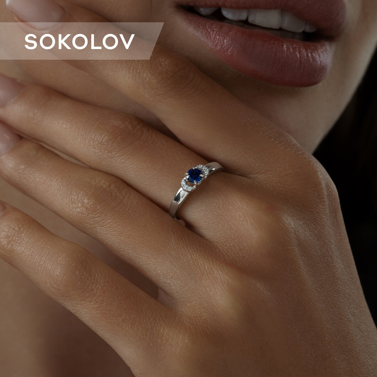 Кольцо SOKOLOV из серебра с корундом сапфировым (синт.) и фианитами 88010008, размер 16.5