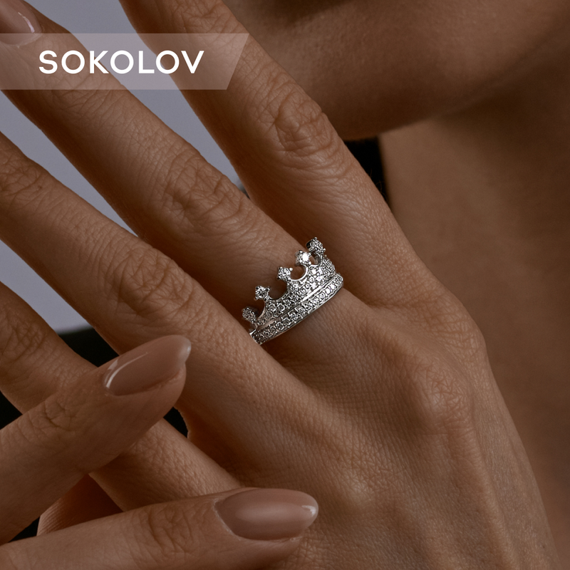 Кольцо-корона с фианитами SOKOLOV 94011218, размер 17.5 интересное: