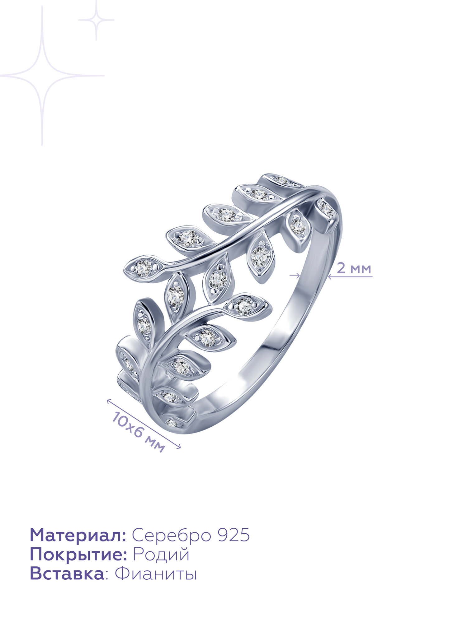 Кольцо ювелирное MIESTILO серебро 925 пробы женское, веточка с фианитами, 19 размер