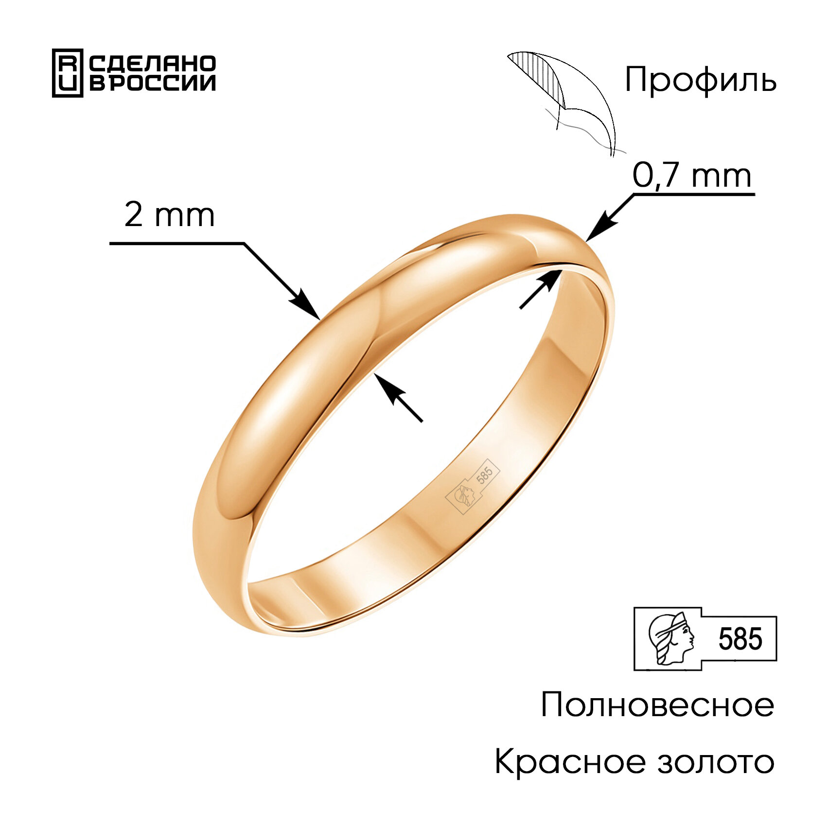Кольцо обручальное ВИКИ, красное золото, 585 проба, размер 22.5