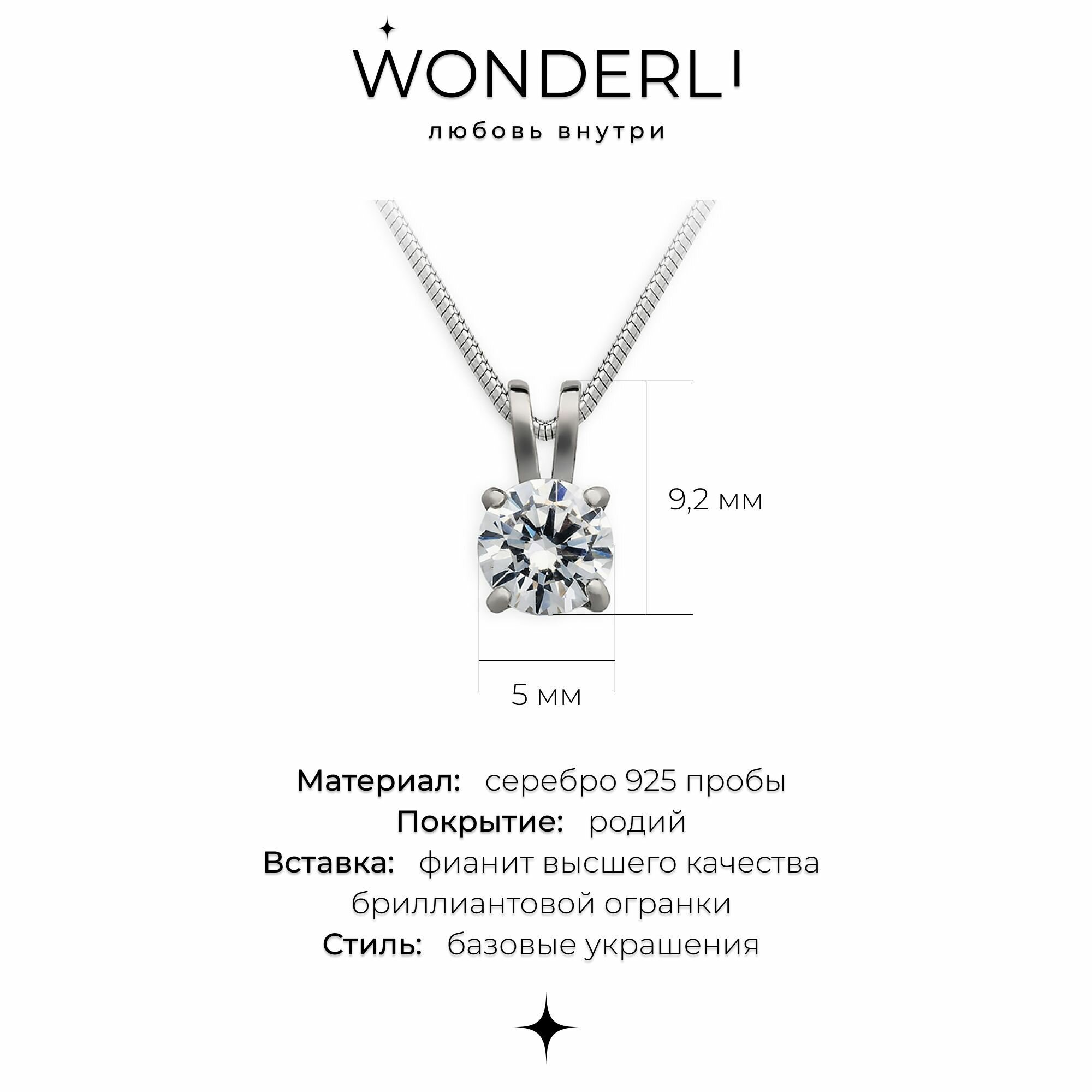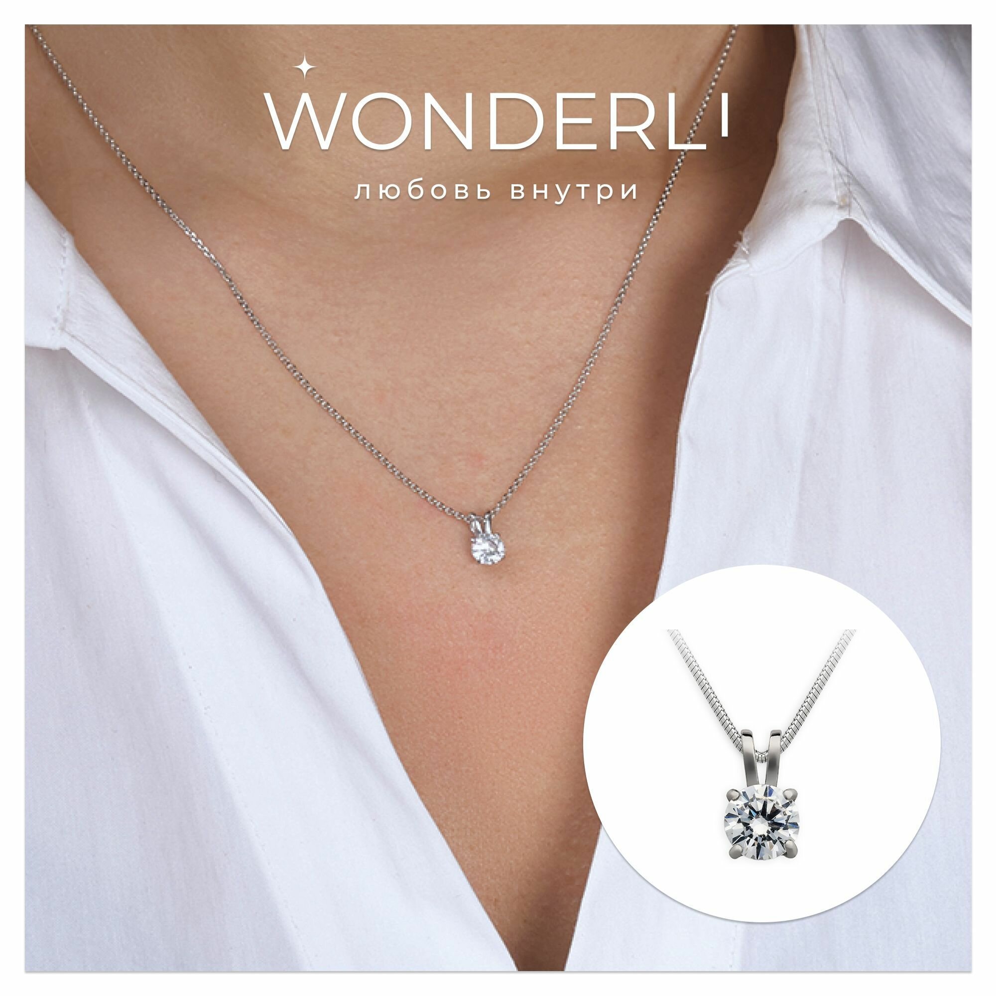 Подвеска WONDERLI классическая на шею из серебра с фианитом, 925 проба интересное: