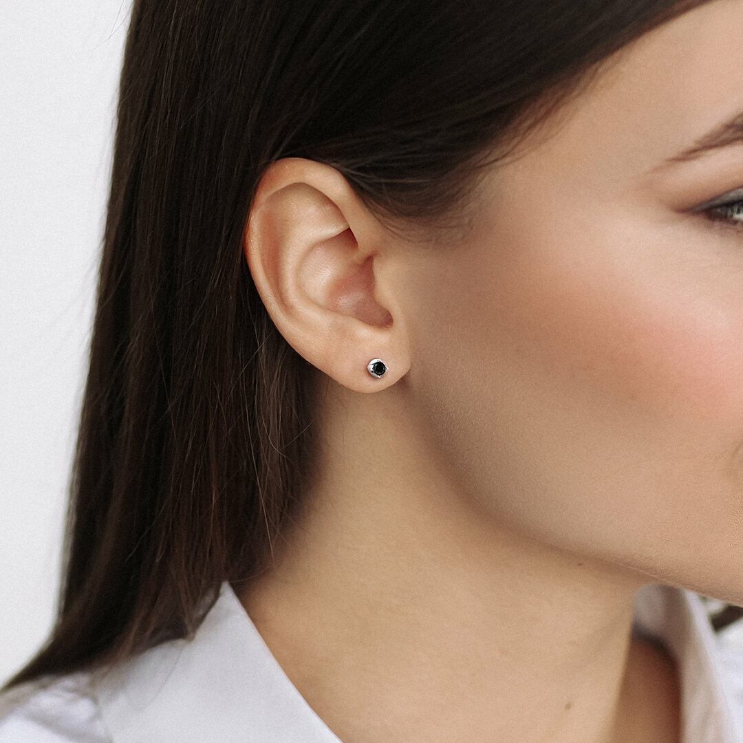 Купить Моносерьга VALTERA гвоздик/пусет из серебра 925 пробы с черным фианитом, 117221, минимализм, унисекс