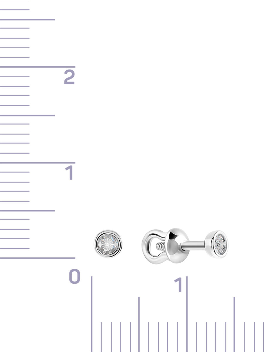 Серьги VALTERA гвоздики/пусеты из серебра 925 пробы с фианитами (6 мм), 118568, минимализм, унисекс,