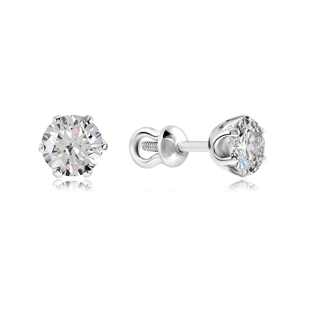 Серьги VALTERA гвоздики/пусеты из серебра 925 пробы с фианитами (6 мм), 118568, минимализм, унисекс,