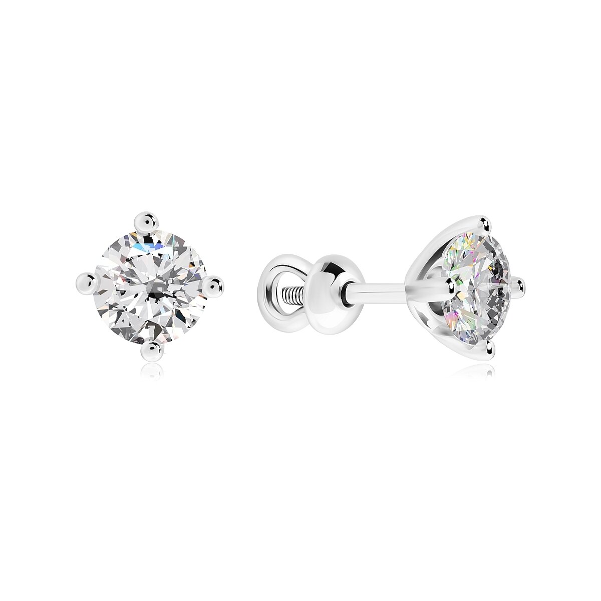 Серьги VALTERA гвоздики/пусеты из серебра 925 пробы с фианитами (6 мм), 118568, минимализм, унисекс,