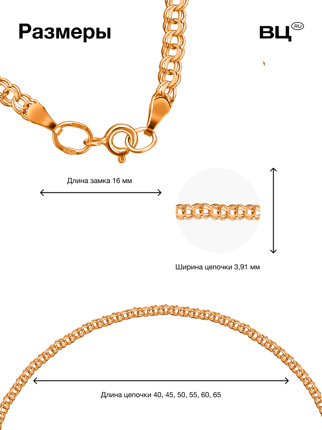Цепь LINEA, красное золото, 585 проба, длина 60 см, средний вес 4.52 г