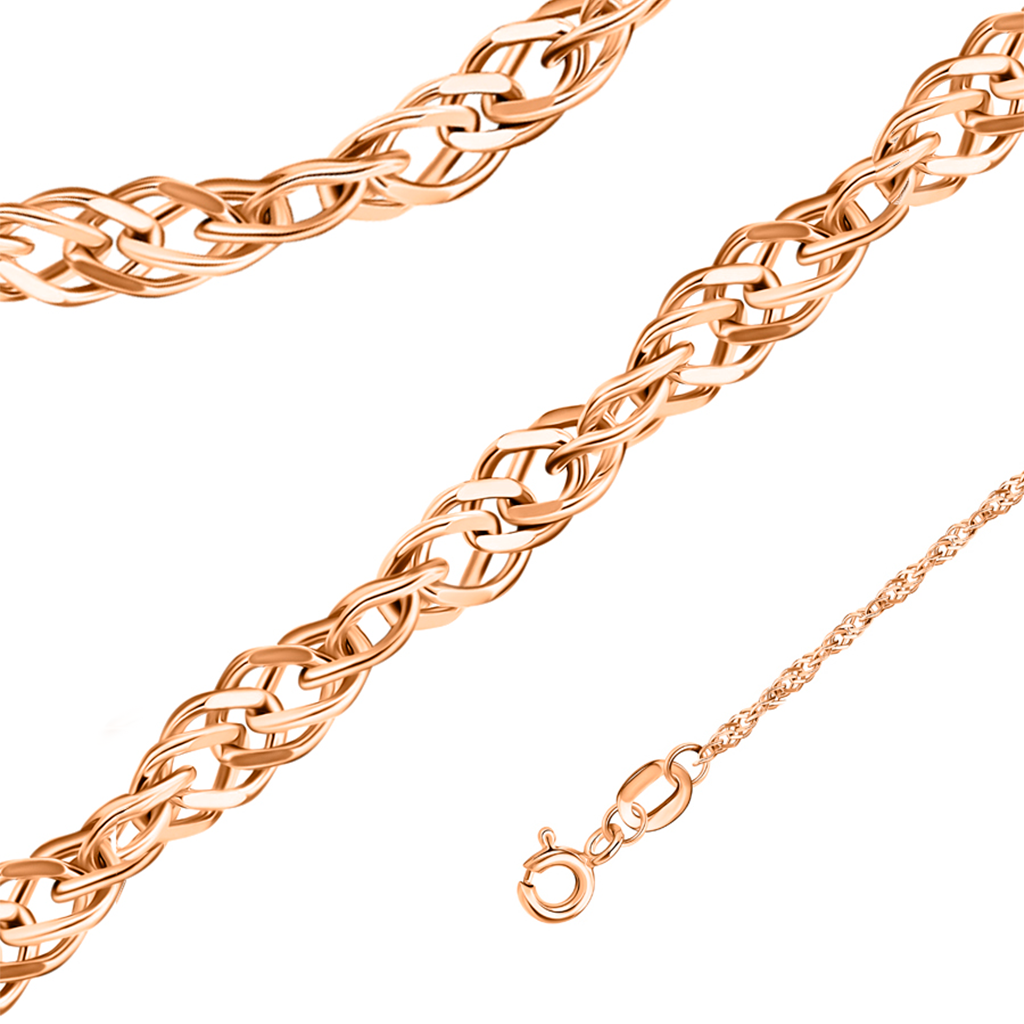Бронницкий ювелир Цепочка серебряная автоматного плетения "Двойная панцирная (Сингапур)" покрытие золото женская, детская