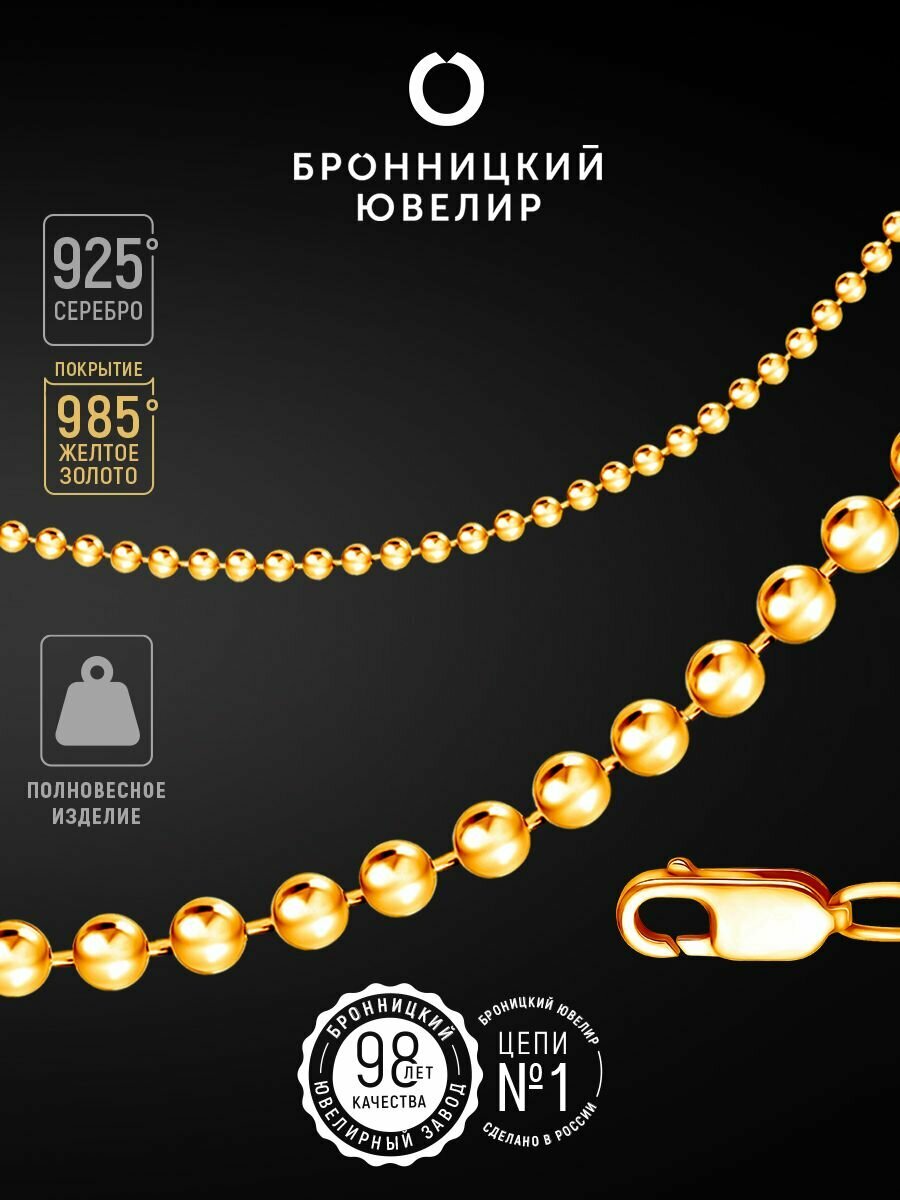 Бронницкий ювелир Цепочка из серебра 925 пробы автоматного плетения "Перлина" из шариков (Шариковая) покрытие золото женская