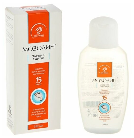 Экспресс-педикюр Мозолин. Средство для удаления мозолей и натоптышей, Две линии, 150 мл